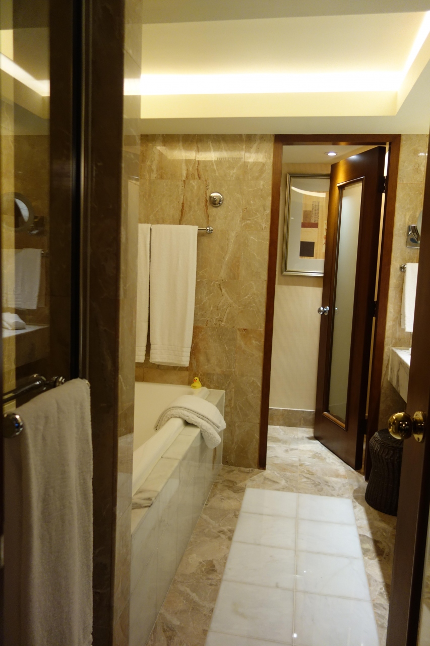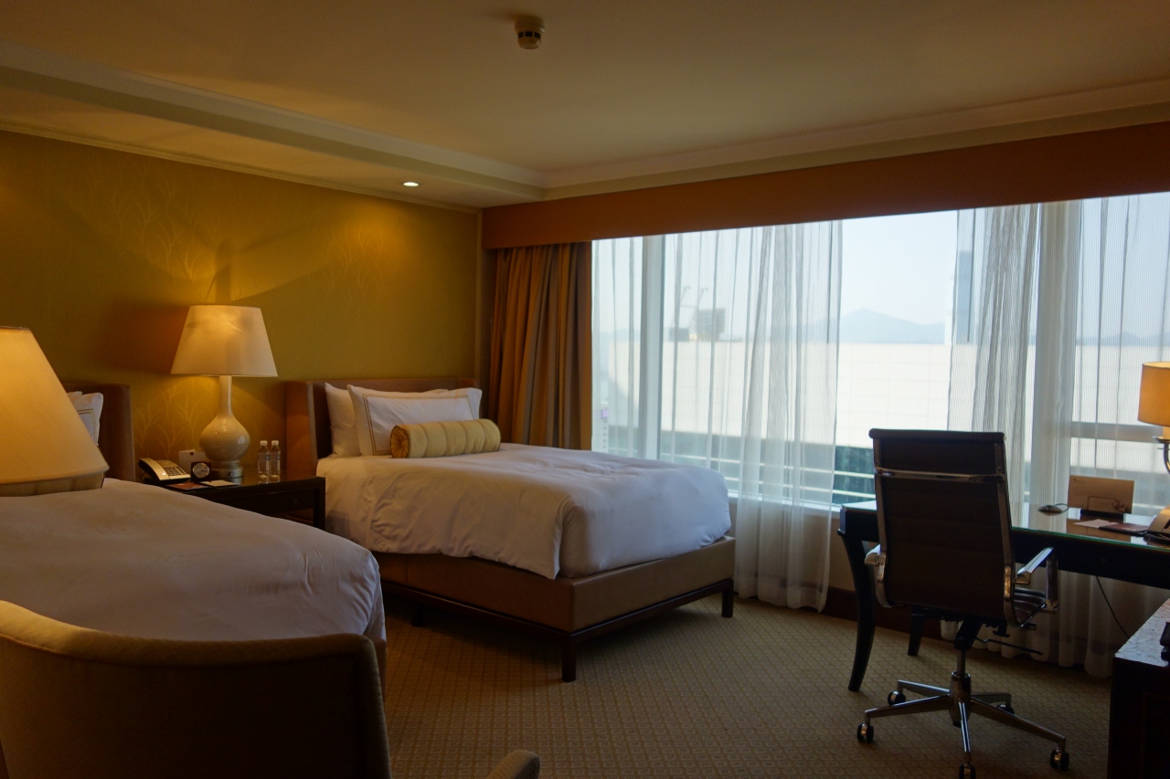 香港には10回以上行っているのに、いつも九龍に宿泊していたので、今回初めて香港島に泊まろうということになり、大好きなパシフィック・プレースというショッピングモールから直結の(地下鉄の金鐘駅からも直結の)コンラッドに宿泊しました。香港島側で、ヒルトンブランドでもあることから、日本人以外のアジア人の宿泊客が少なめで、西洋人の宿泊客が多く、旅慣れた、静かで落ち着いた客層だったため、非常にくつろげました。部屋はビクトリア湾を臨むハーバービューか、ビクトリアピークの方を臨む部屋かを選べますが、ハーバービューを選びました。九龍サイドから見る夜景ほど劇的な夜景ではなかったものの、ホテルの客室が全て高層階なので、部屋からの眺めが良く、開放的な気分になれて良かったです。高層階のわりにはエレベーターも速く、不便はありませんでした。部屋の広さも十分で、バスルームやテレビなどの設備も良く、アメニティは上海タンで(これがとても素敵でした)、コーヒーメイカーやお茶などの品ぞろえも上質で、ほぼ文句なしの滞在でした。唯一、ツインに3人(子供一人)で予約していたのに、タオルやアメニティが二人分しかなく、初日にハウスキーパーに電話しなければならなかったことだけが残念でした。が、他が全て良かったので、まあ気にならない程度のマイナス点でした。