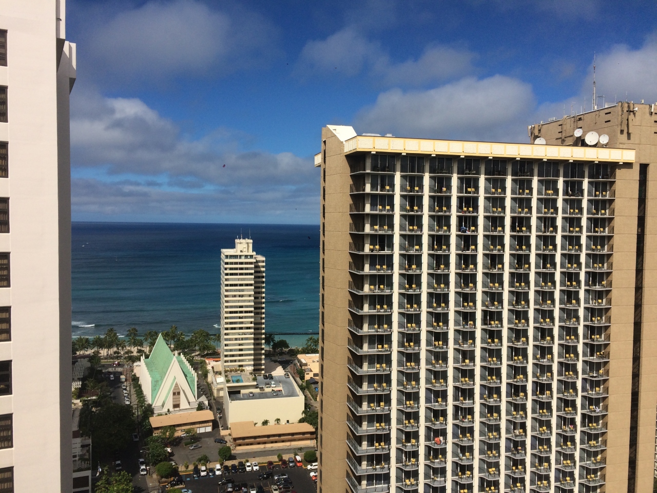 どうせワイキキに泊まるならオーシャンビューが欲しいという方は、オーシャンビューのチョイスがあるのも嬉しいです。しかし、建物と建物の間から海が見える感じとなるので、期待のしすぎには注意です。詳しくは写真を参照ください。
