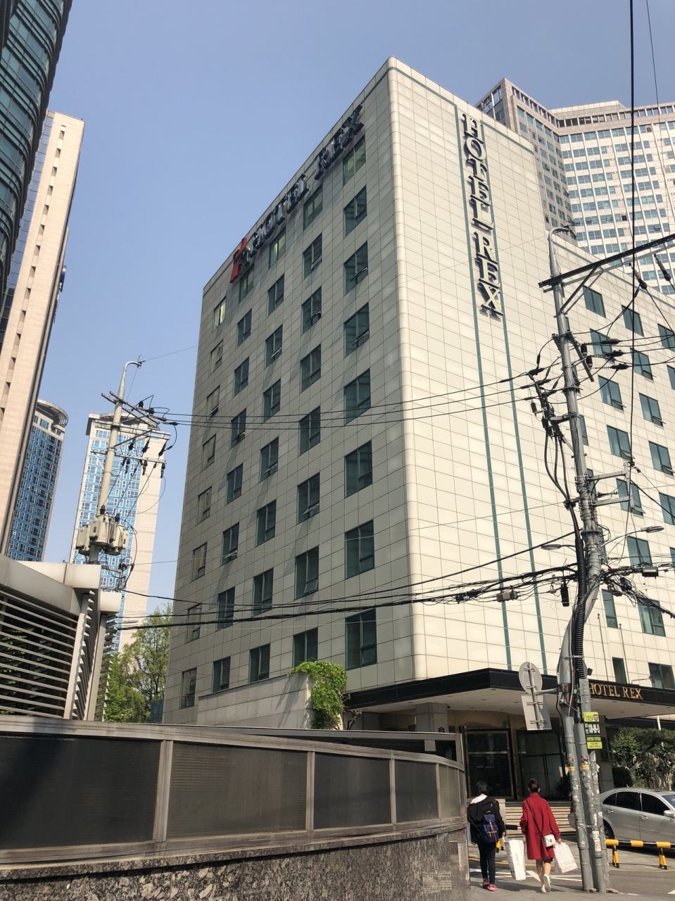 レックスは南大門まで歩いて3分ぐらいの立地です。地下鉄の駅からはさらに近く買い物食事等にはとても便利なホテルです。フロントの方はあまり日本語が上手ではない気がします。部屋は古いホテルなのでスリッパ無しで部屋を歩くのは気が引ける感じです。寝るだけなら充分だと思います。また利用したいです。