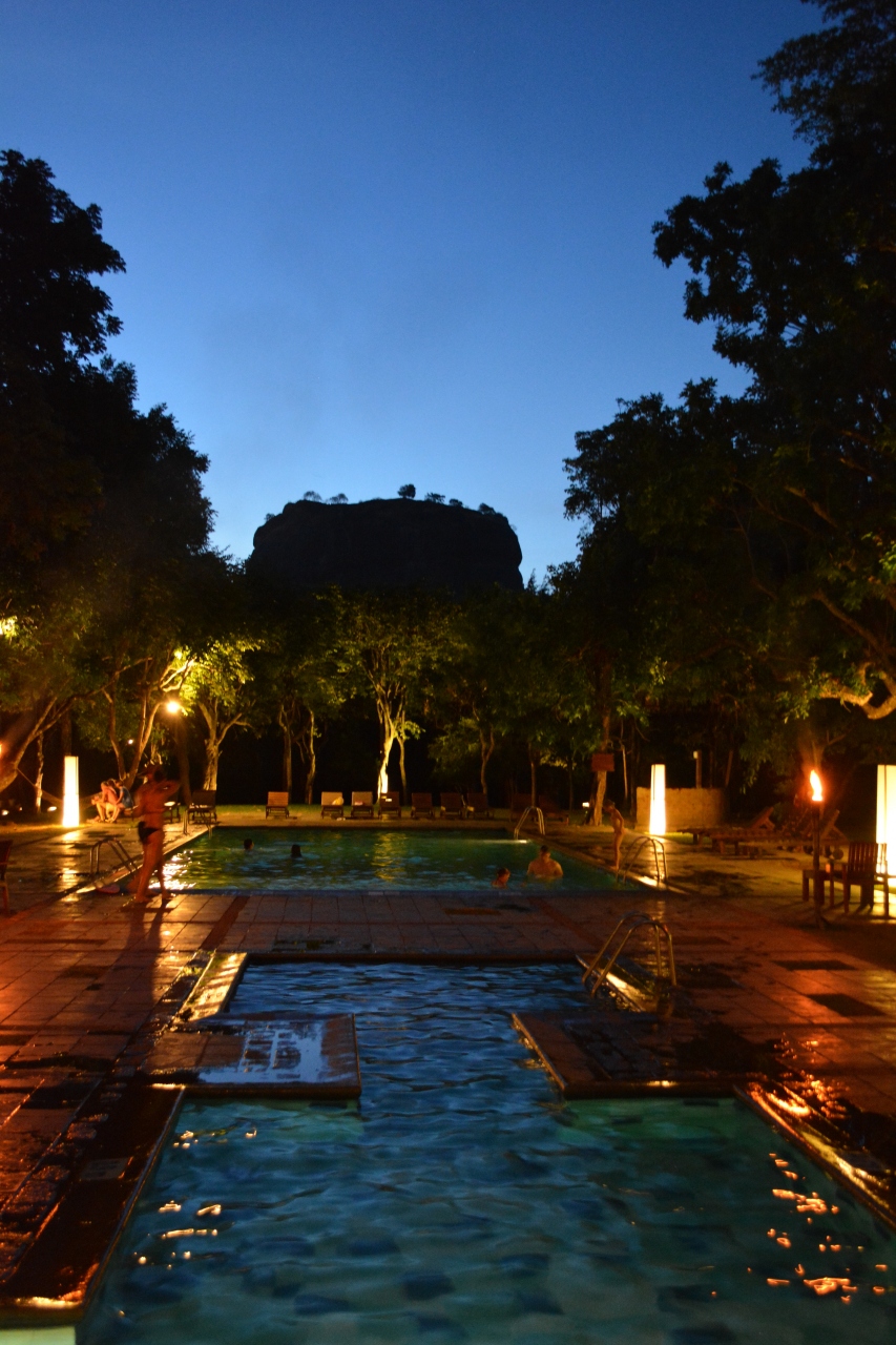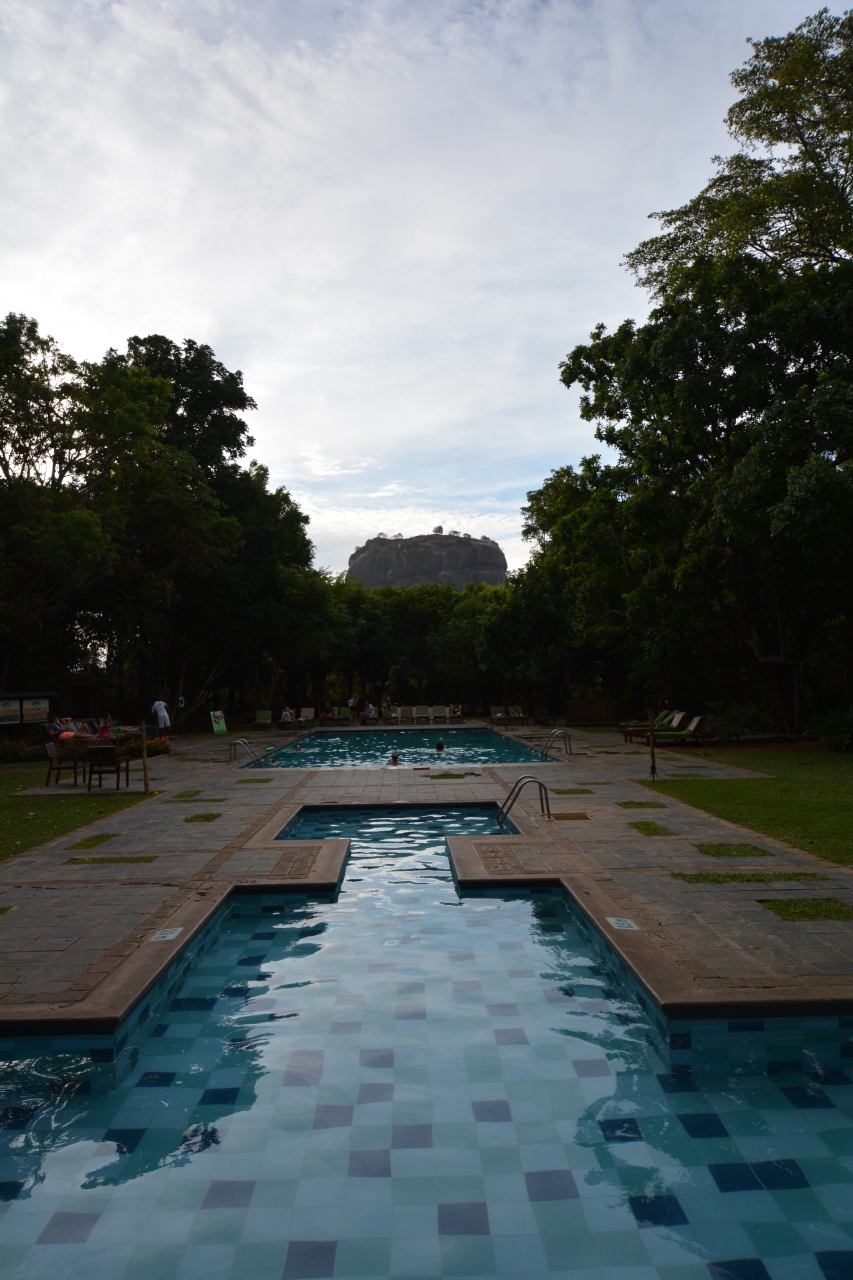ホテルのプールから見えるシギリア・ロックに興奮してしまいます。