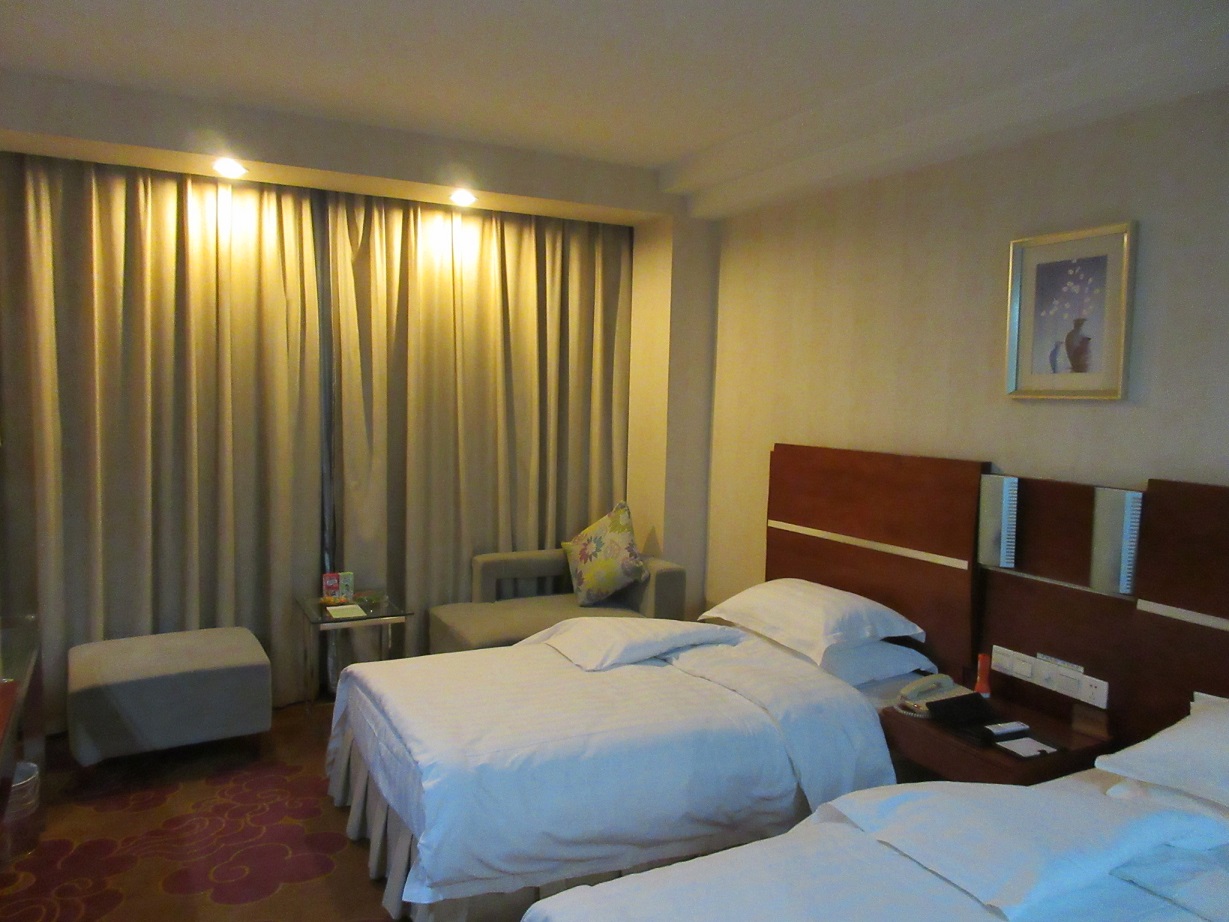 嘉峪関市の中心に位置するホテルで、中国のビジネスマンや旅行者が大勢宿泊していました。地元では有名で格式のあるホテルなのか、朝食の後でロビーをうろうろしていると、結婚式の用意をしていました。部屋はいたって普通で、ウェルカムドリンクとお菓子がテーブルに置いてあり、とても有難かったです。