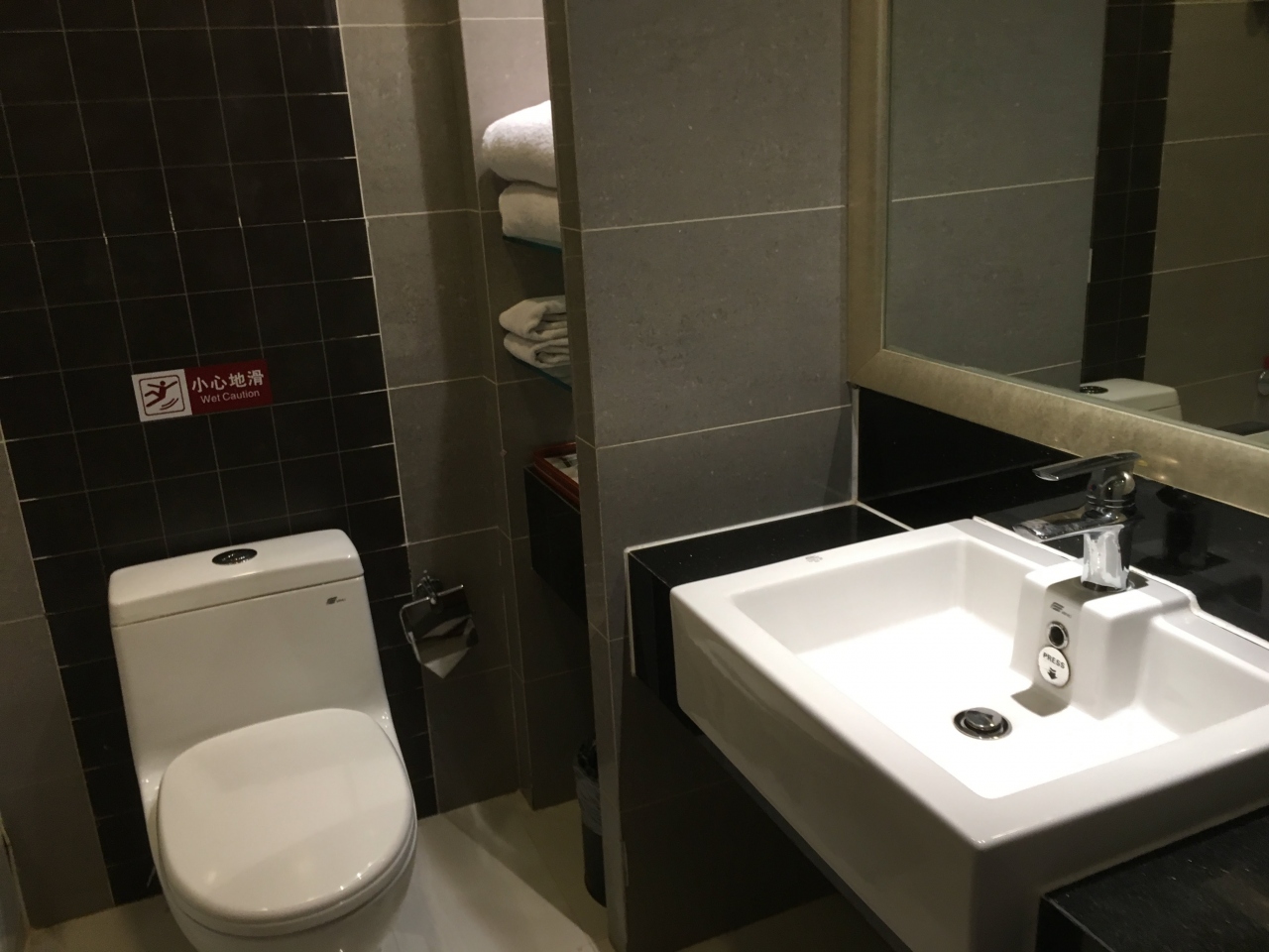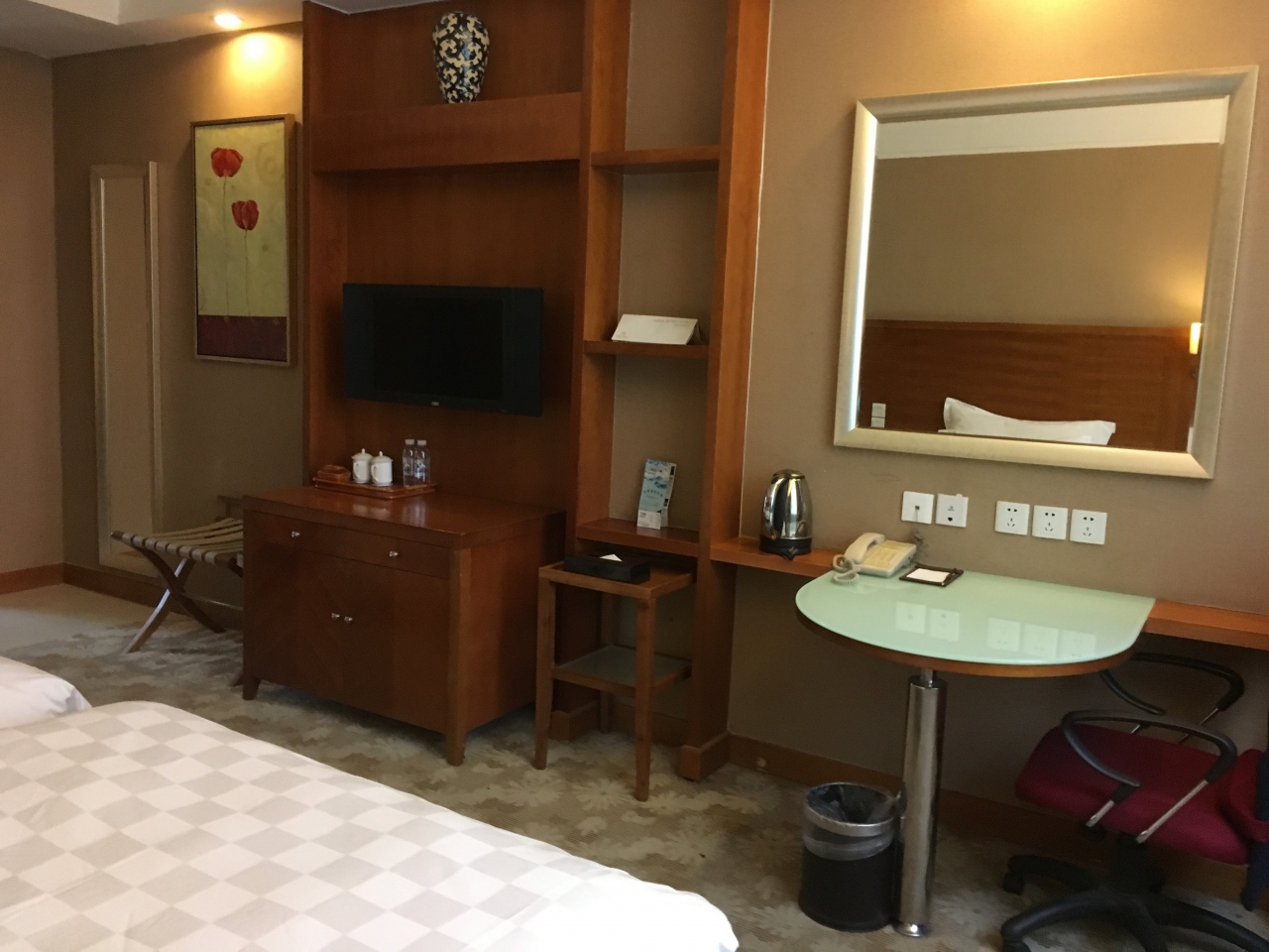 標高3650mのラサにある大型ホテルです。フロントと朝食会場は1階、フロント内線は8000、部屋から部屋への通話は部屋のみで繋がります。外線は9発信です。鍵はカードキーのタッチ式で、主電源タイプなので、部屋に入ったところにあるボックスにカードを差し込むと電気が付きます。バスタブ、ドライヤー、ポット、ティーセット、バスローブ、スリッパ、歯ブラシ、カミソリなどのアメニティが完備されていますが、冷蔵庫と金庫はありません。Wi-Fiは無料で、パスワードは66666666です。朝食は6:30からオープンしています。麺コーナーもあり、数種類の中から麺をチョイスすると作ってくれます。