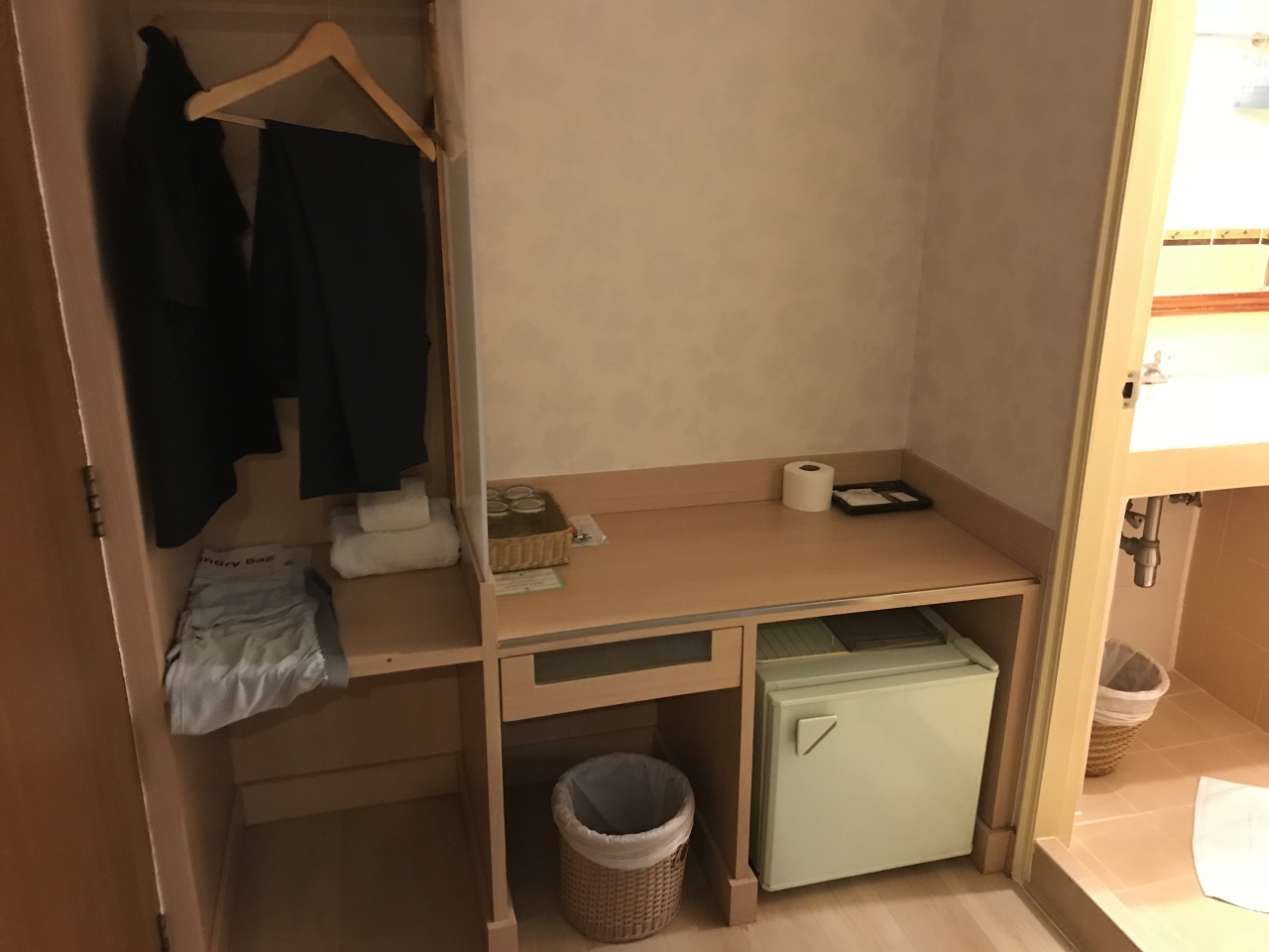 客室について。入り口ドアの隙間が大きめで,室内外で音は筒抜け。清潔で,裸足でも足裏が汚れる感覚は皆無だった。無料の水2本(ガラス製),セーフティボックス有り。テレビの日本語放送はNHKワールド。運悪くエアコンが故障していたようで,冷房が効かずに困った。また,洗面台付近の隙間から蟻が出入りしていたし,虫に刺された同行者もいた(蚊ではなさそう)。シャワーとトイレはカーテンで仕切られているだけの実用的なものだが,湯温・湯量ともに問題なし。石鹸とシャンプーあり。