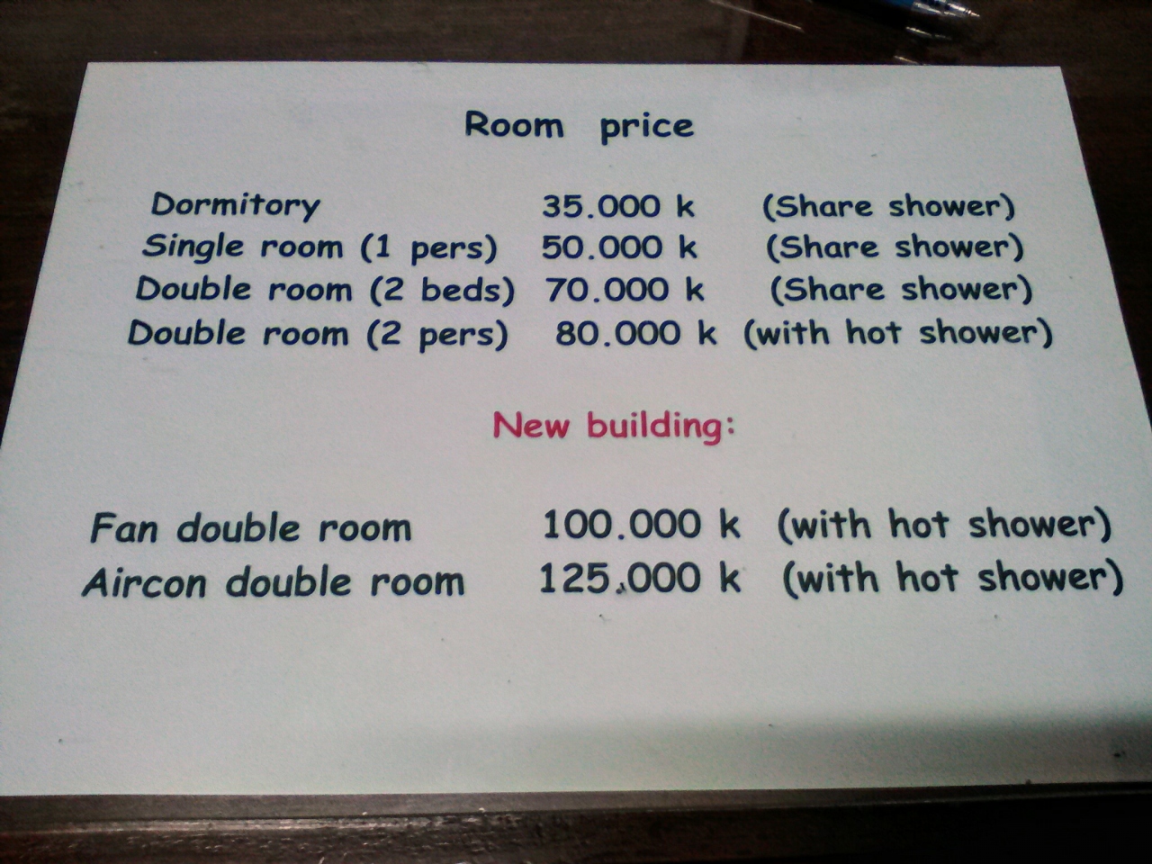 ダブル:7万kip〜