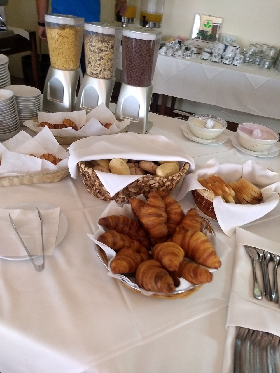 朝食はそれほど種類は多くないものの、必要最低限は揃っている感じ。小さな総菜パン的な奴が旨かった。