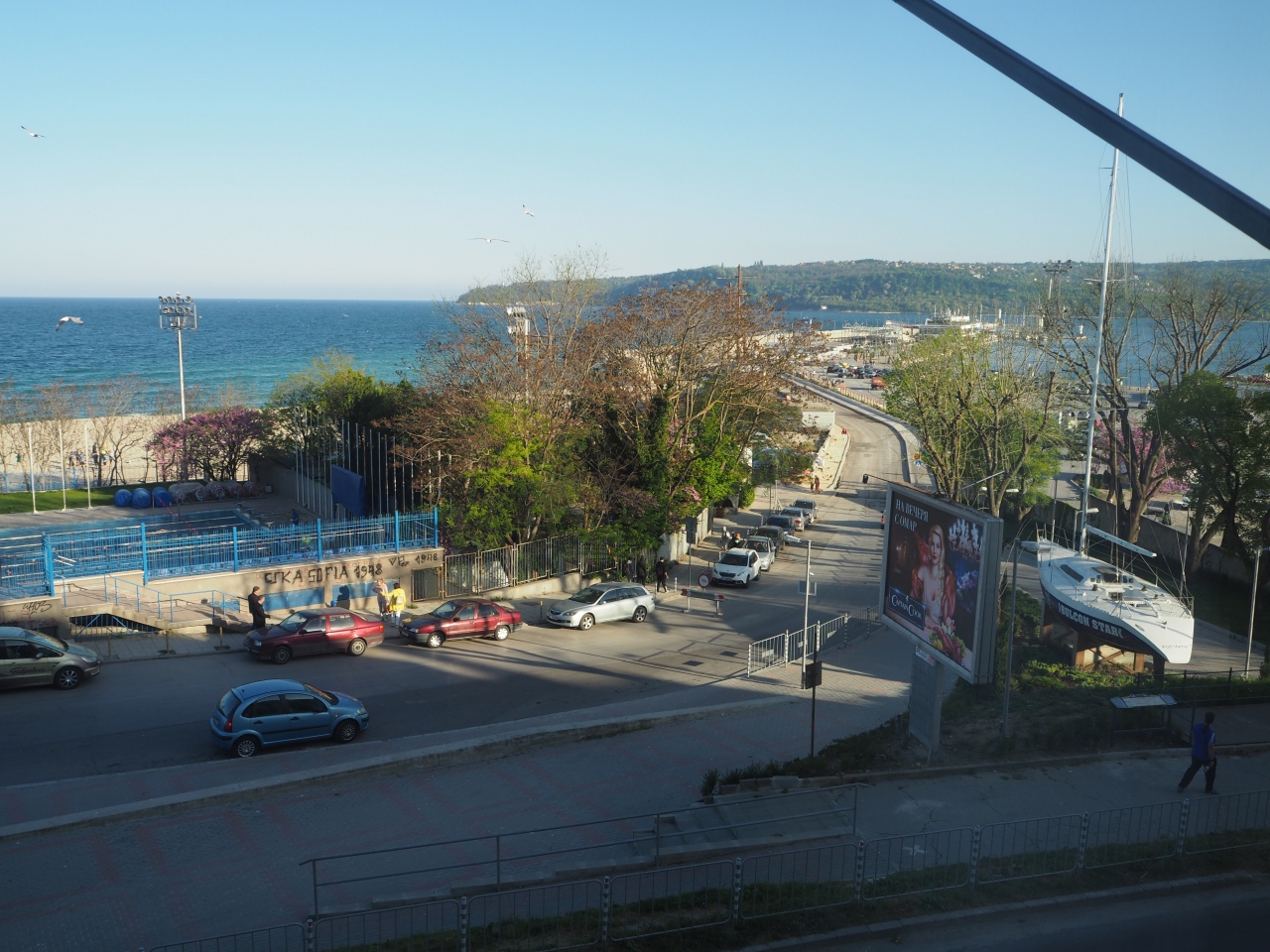 海との間にはプールや道路もあるので、静かに波の音を聞く、という感じではないが、遠くに広がる黒海を眺める事は出来るので、眺望に不満は無し。