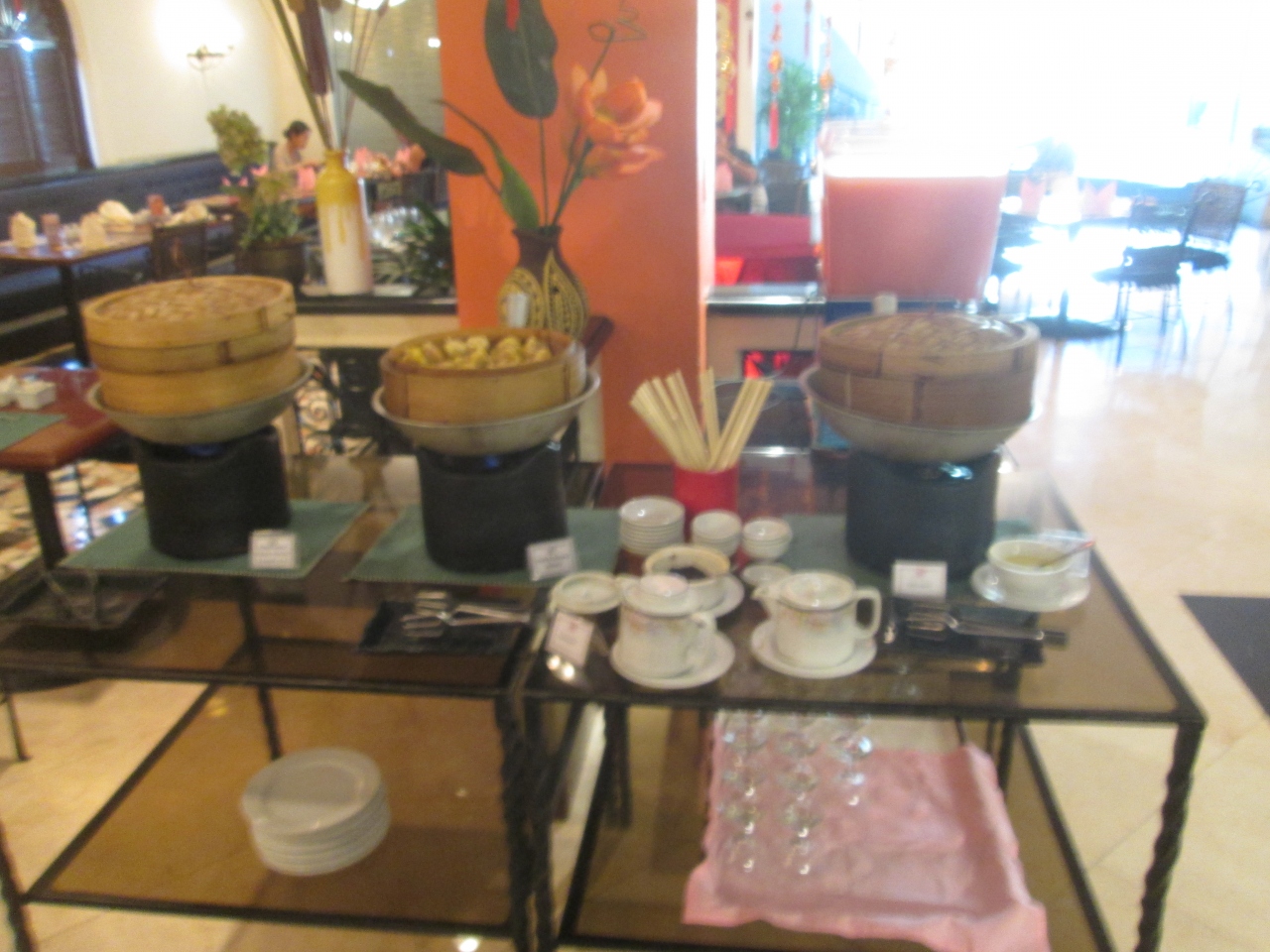 ヘリテイジ ホテルのフロントでチェックイン時に朝食券を発券してもらい、利用することになる。2日間利用したが、ホットメニューは1日目と2日目で変わった。種類豊富なメニューでオムレツなとの玉子料理は作ってくれていた。肉料理が意外に充実しており満足のいく内容であった。