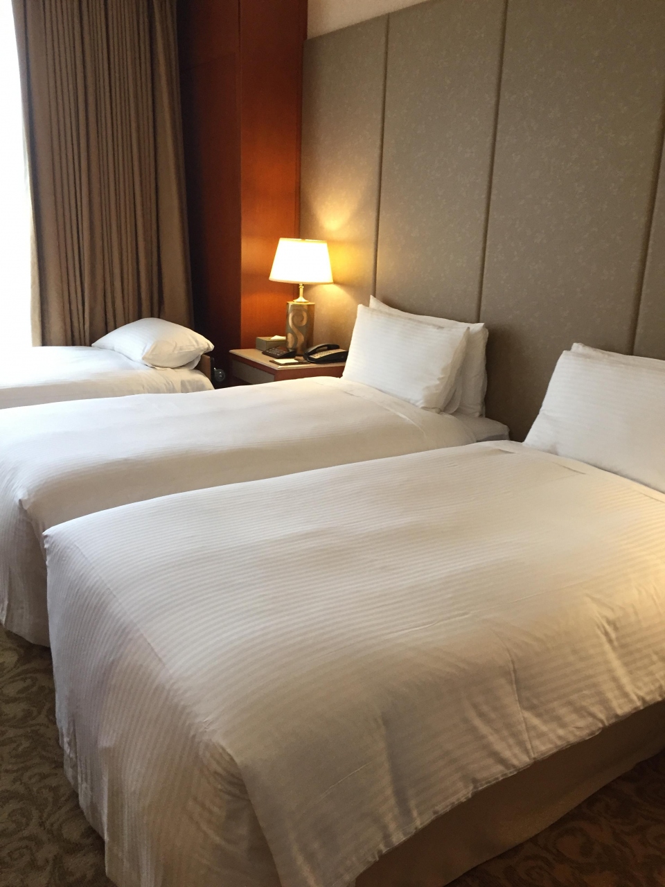 南京東路に面していて、林森公園を見下ろす(そうでない部屋もあります)ホテルです。中山駅、松江南京駅に歩いて10分くらいです。バス停が近くにあるので、バス移動に便利でした。