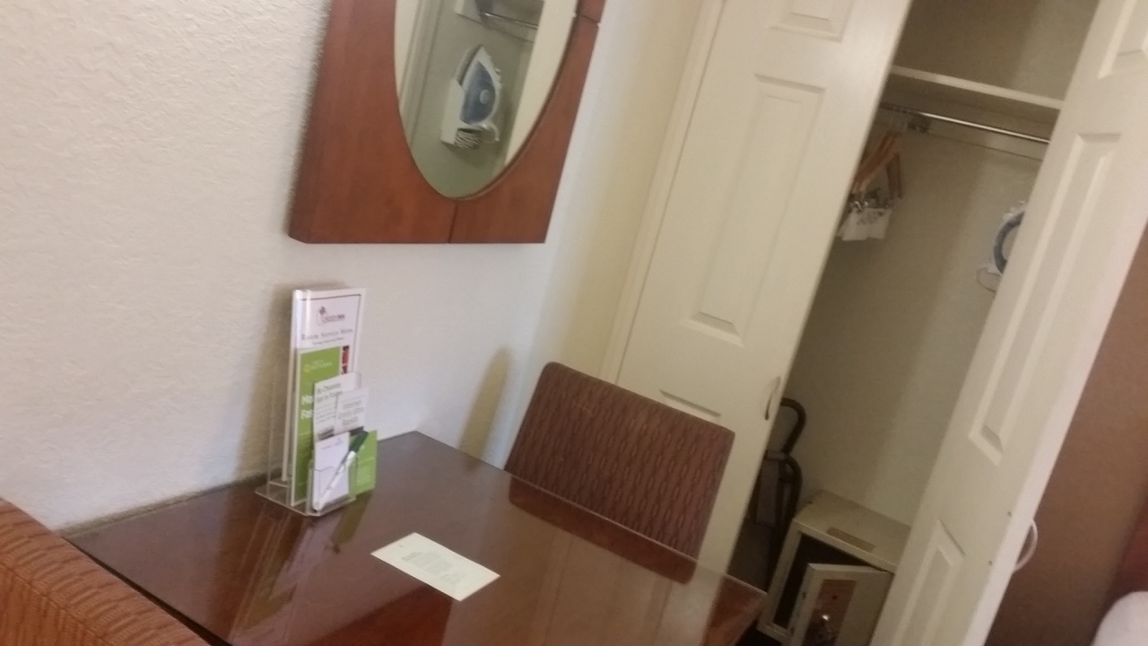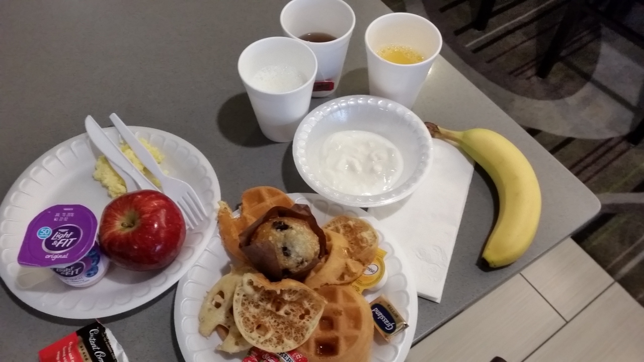 ツアーで宿泊しました。普通のモーテルです。部屋にはバスタブ、固定式シャワー、アイロン、テーブルセット、電子レンジ、冷蔵庫、コーヒーメーカーがありました。朝食は生のフルーツ、ヨーグルト、ワッフル等がありました。味は普通。