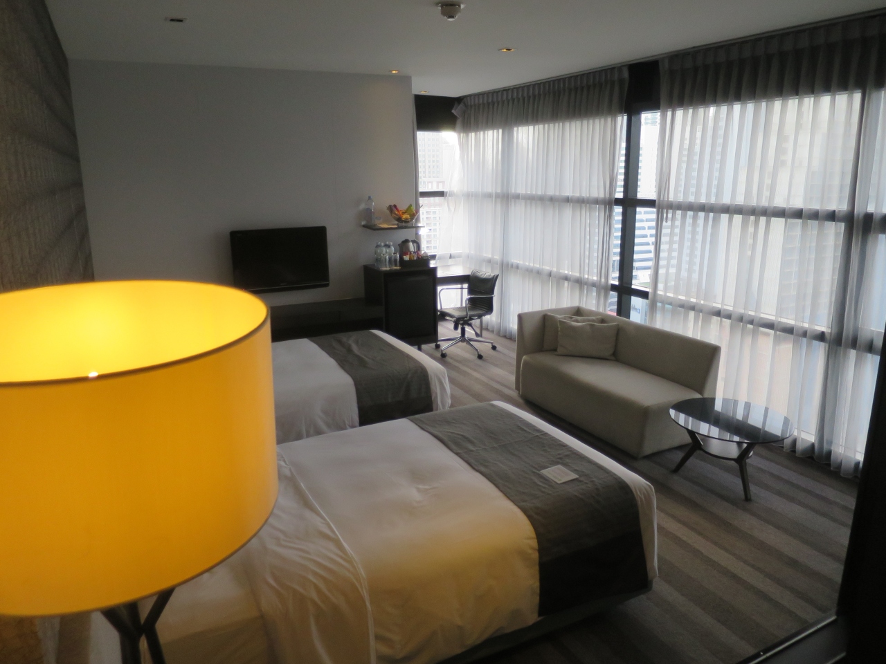 コーナールームを利用。上層階でさらに窓が大変大きいこともあり眺めが非常に良かった。しかし26階にいても眼下の通りを行き交う車、特にBTSの走行音がガラス越しに聞こえてきたのは驚いた。あまり防音性が無いガラスなのだろうか。