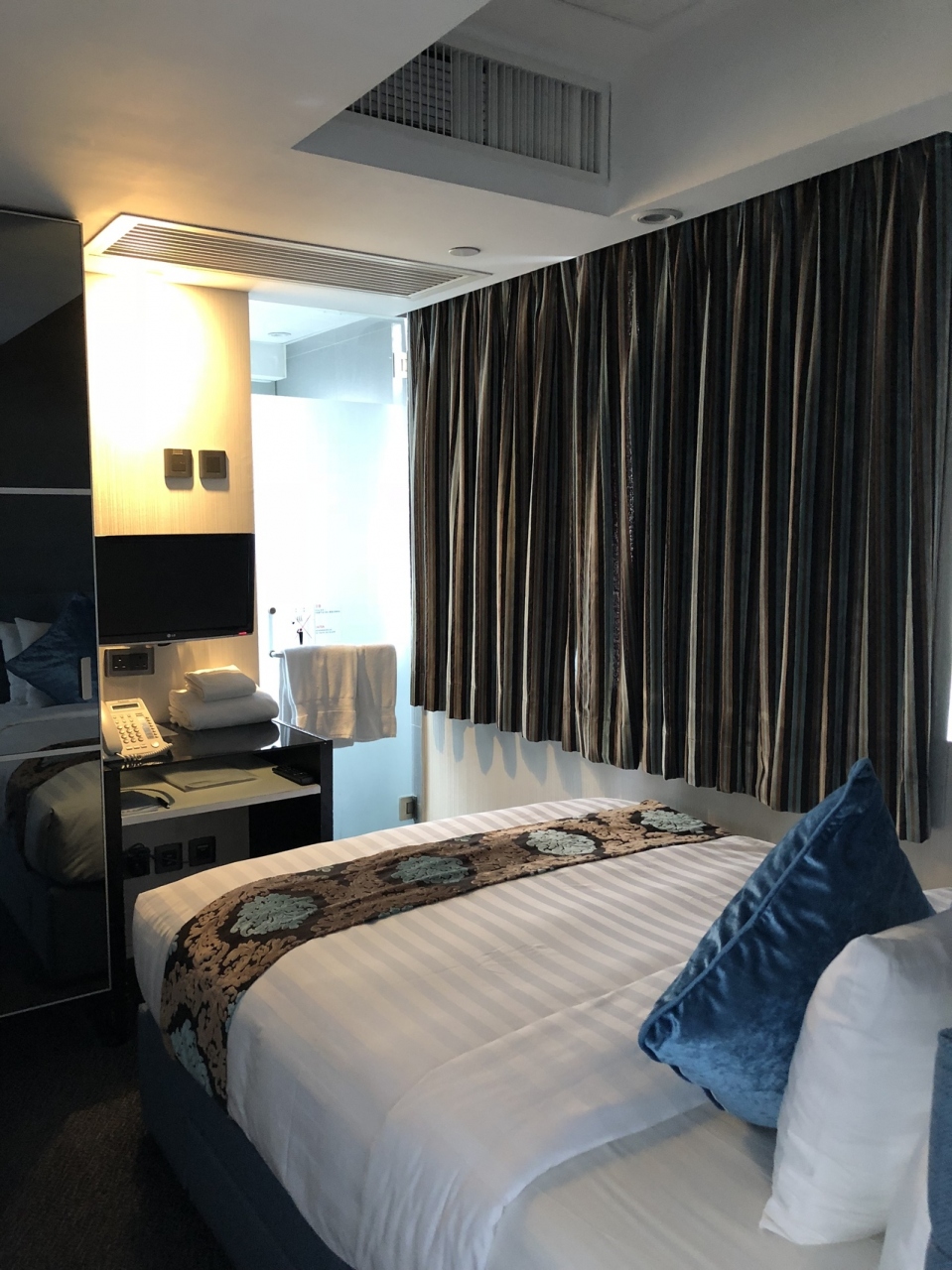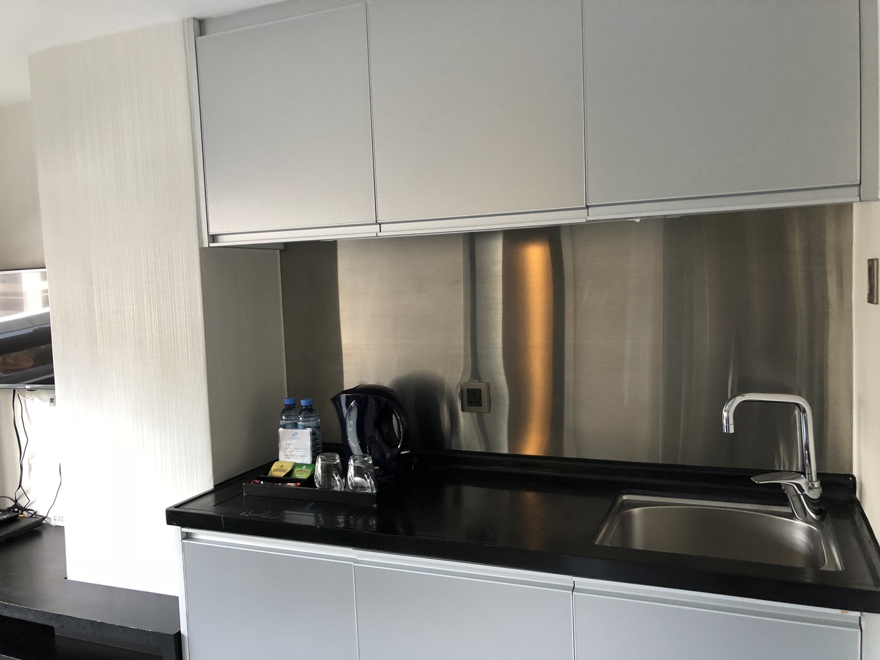 マンションを改装したようで、おもしろい間取りでした。ドアを入ってすぐ右手にキッチン、正面にソファ&テレビ、左の部屋にベッド、そしてベッドの部屋の奥にドアがあって、トイレ&シャワーでした。
