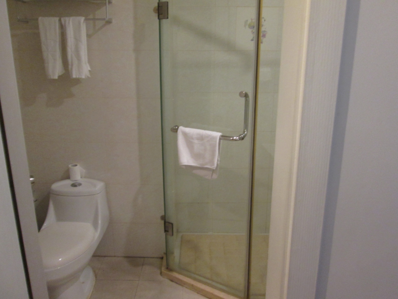レイクサイド ホリデー イン ホテルのシャワールームは、人1ひとりが立って使うような狭いブース型であった。扉で閉まるタイプだったので、上海のエコノミーホテルであるような使用後に便座はトイレルームの床がびしょ濡れになることはなかったので使い勝手は良かった。