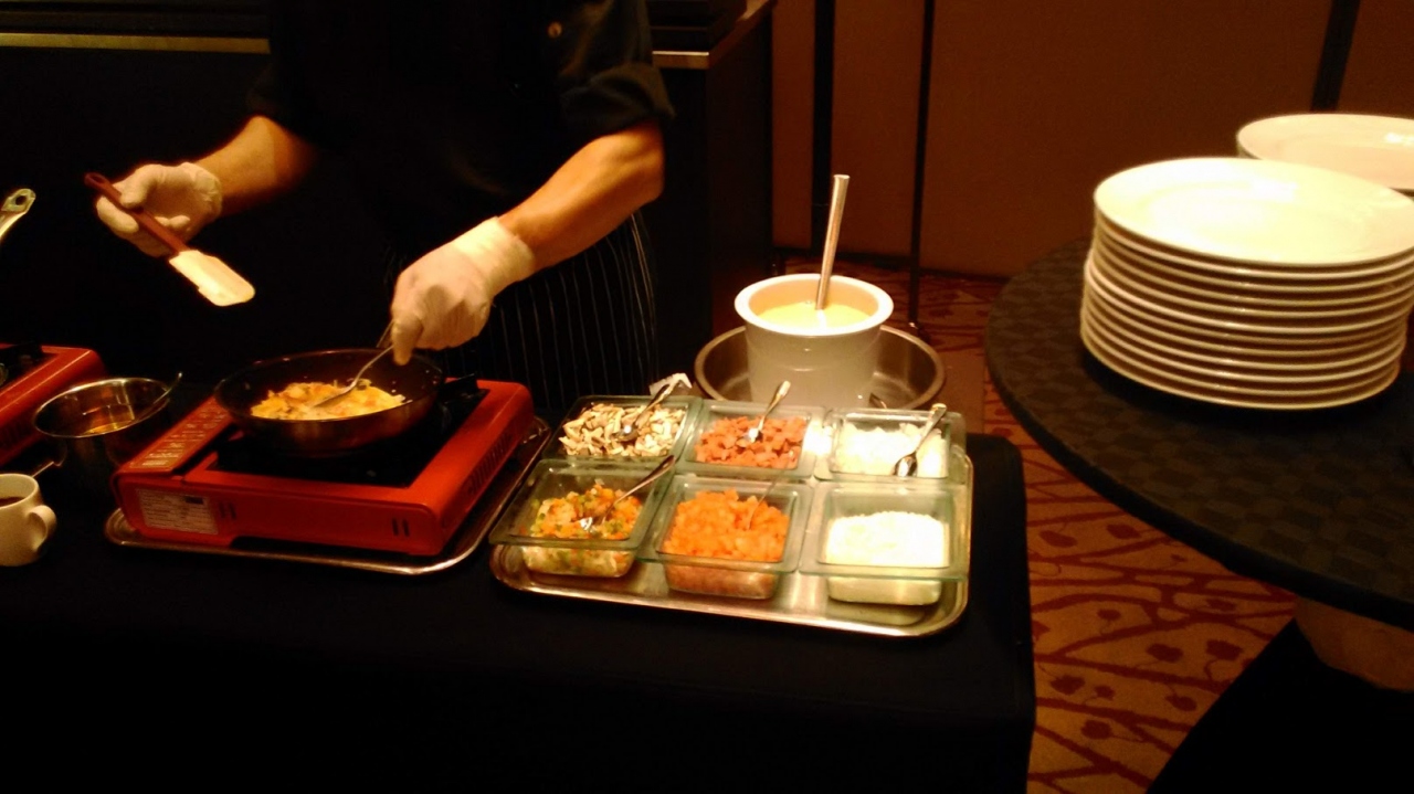 ・朝食のビュッフェにはエッグステーションがあり、温かなオムレツなどをいただけます。