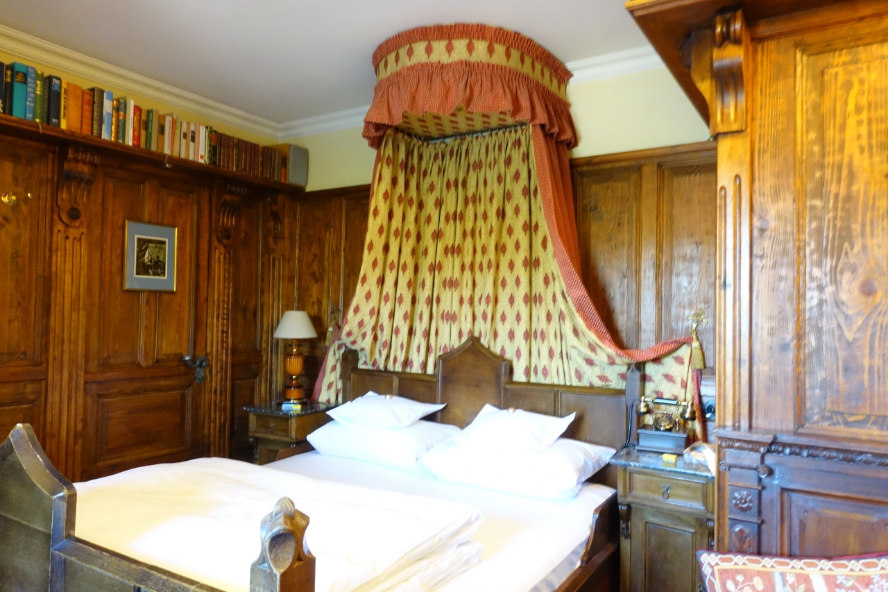公式HPから予約しました。朝夕ご飯付きの部屋しか予約できませんが、二人で一泊二食付きで300ユーロでした。夕食のコースは単独で頼むと45ユーロ(二人で90ユーロ)なので、300ユーロでもリーズナブルだなと感じました。古城ホテルに泊まるという特別感には変えられませんしね。レストランからの景色も最高ですし、汚部屋もとても可愛かったです。陽当たりが良く室内が少し暑かったですが、扇風機があったので問題ありませんでした。私たちは車で行きましたが、歩いて行くのは難しいと思うので、車がない場合はタクシーを利用すると良いと思います(駅前には停まっていないこともあるようなので、予めホテルに頼むのが良いと思います)。