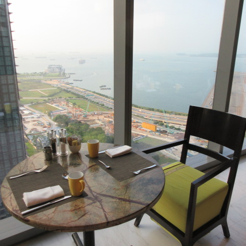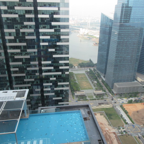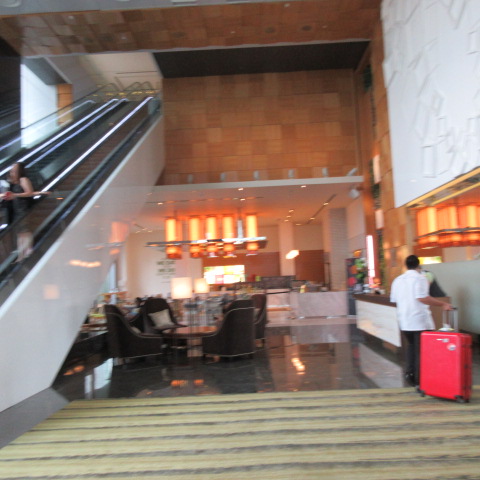 マリーナベイサンズに近いSPGホテルを探したら、ここしかなかった。マリーナ地区は再開発地区で、工事現場で、囲いのある場所多かったけど、ホテルのあるアジアスクエアはとっても立派で綺麗。企業戦士たちがテラス席で集っていました。その流れがホテル内にも来てました。日本人見かけず、のホテルでした。マリーナベイサンズビューを希望したら、シンガポールフライヤーが見える43階の部屋にしてもらえました。ベイサンズの建物はビルで下げぎられてどこからも見えません、が、ベイサンズのスペクトラショーの水辺の噴水はラウンジの角からよく見えました。ツインの部屋はおしゃれで居心地よかったです。エレベーターが高速で、ストレス無しです。