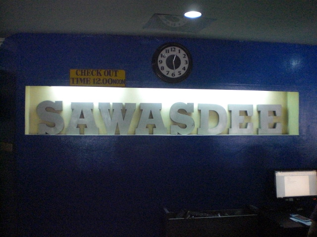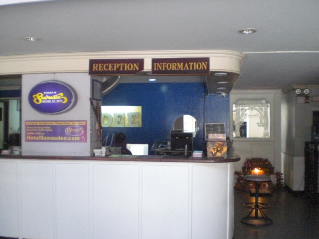サワディーパタヤの受付です。サワディーの共通標識が見えます。