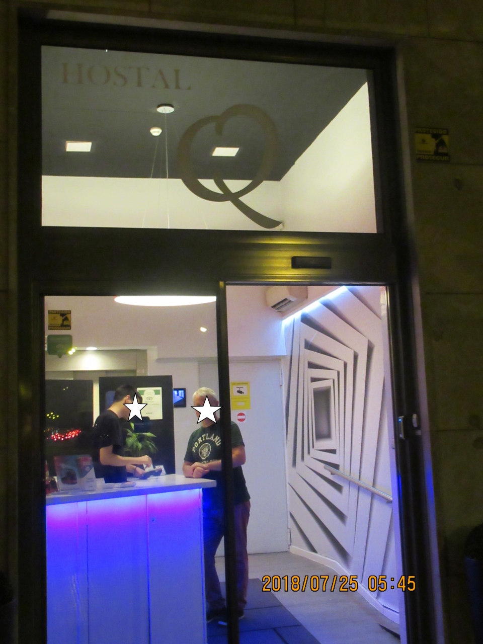 カタルーニャ広場からスーツケースをもって徒歩7、8分程度の距離にあるこじんまりとしたホテルです。1階の入口は受付のみでロビーが無い為、一般のホテルのイメージで行くと見つけにくいと思います。事前にホテル入口の写真を見ておくことをお勧めします。