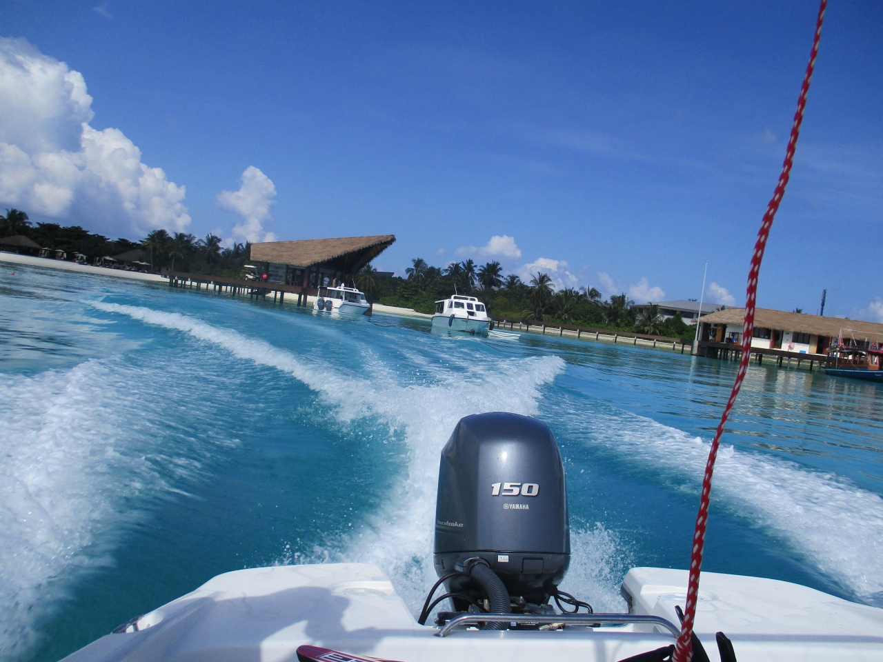 関西空港、香港、マーレ、現地空港、と乗り継ぎ、1日半かかる行程でした。途中、マーレでわけのわからないホテルに宿泊しました。マーレからは水上飛行機ではなく普通の国内線でまた2時間飛行します。遠いですが、海は本当にきれいで、魚も非常に多いです。水上コテージでしたが、部屋は広くてテラスにはプールもありました。