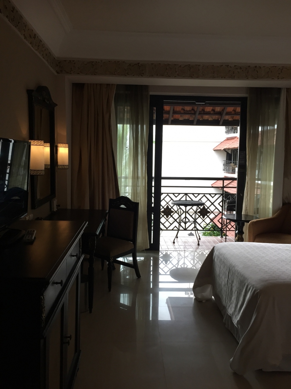 ジャワ建築を取り入れた建物で、リゾートっぽい雰囲気のあるホテルでした。古いようなので、シャワーが固定だったり、ベランダのドアが密閉できなかったりしましたが、さほど苦にはなりませんでした。