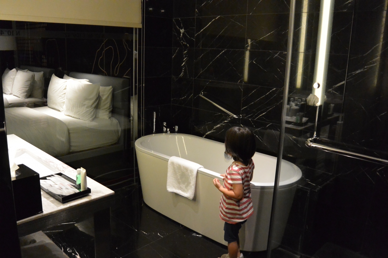 お部屋はモダンなインテリアで室内は暗めでバスがガラス張りだったので両親達はちょっと使いにくいと言っていました。