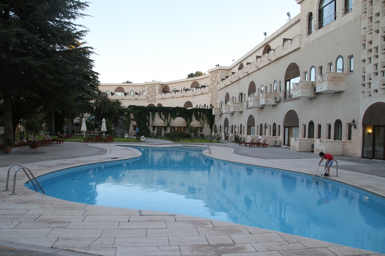 ウチヒサールの鳩の谷に面した場所にありホテルからウチヒサールの岩窟地区を一望できます。3階建ての横に長いホテルです。玄関とフロントロビーは3階にあります。ホテルは近代的なホテルで庭にはプールもあります。ホテルにはエレベーターはありません。