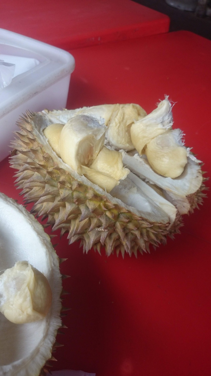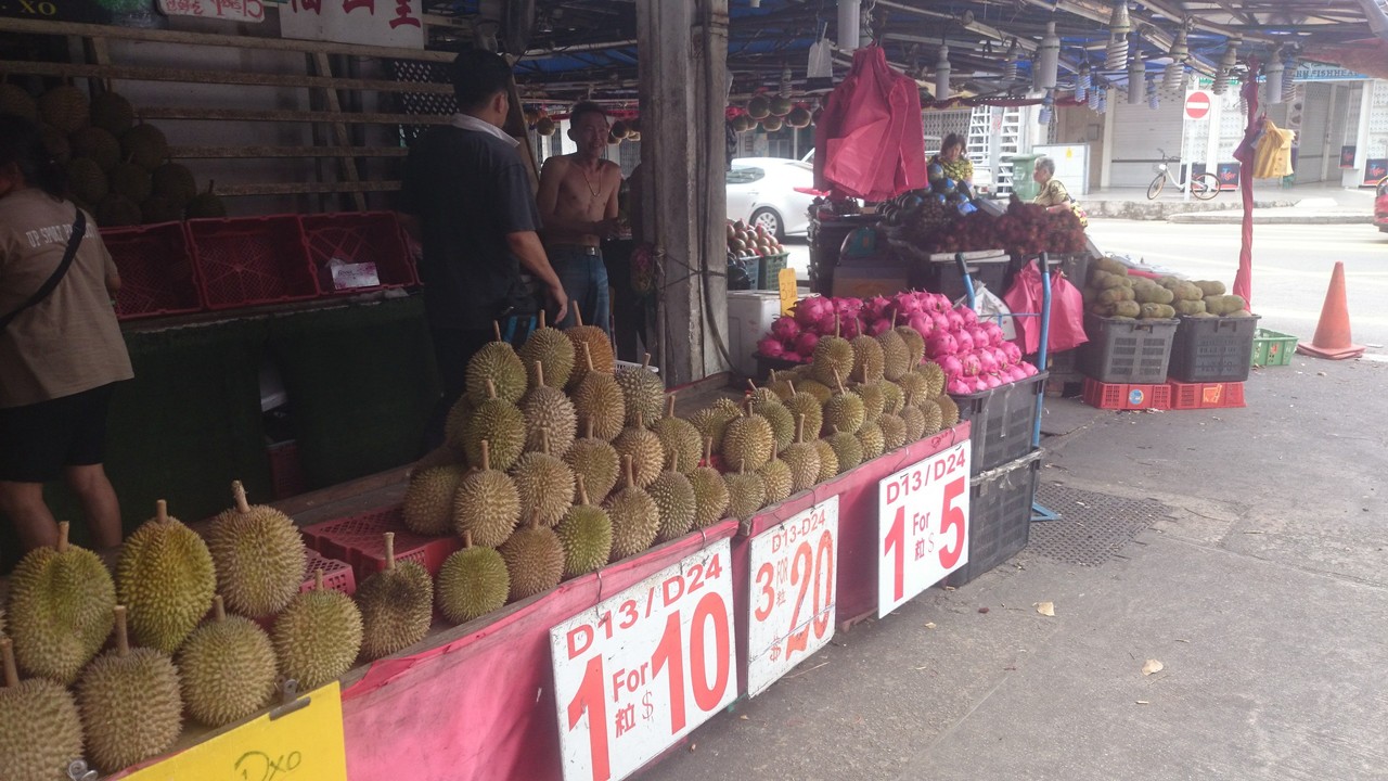チェックインやチェックアウトの際に、フロントのオーナーっぽいヒトがまくしたてるようにしゃべります。隣はスーパーマーケットがあり、バラマキ用のお土産も用意できました。近くにはドリアンなどの果物屋さんがたくさんならんでいます、、