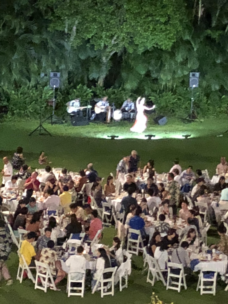 部屋からヒルトンの花火も観れて、中庭でパーティーをやっていれば丸見え!