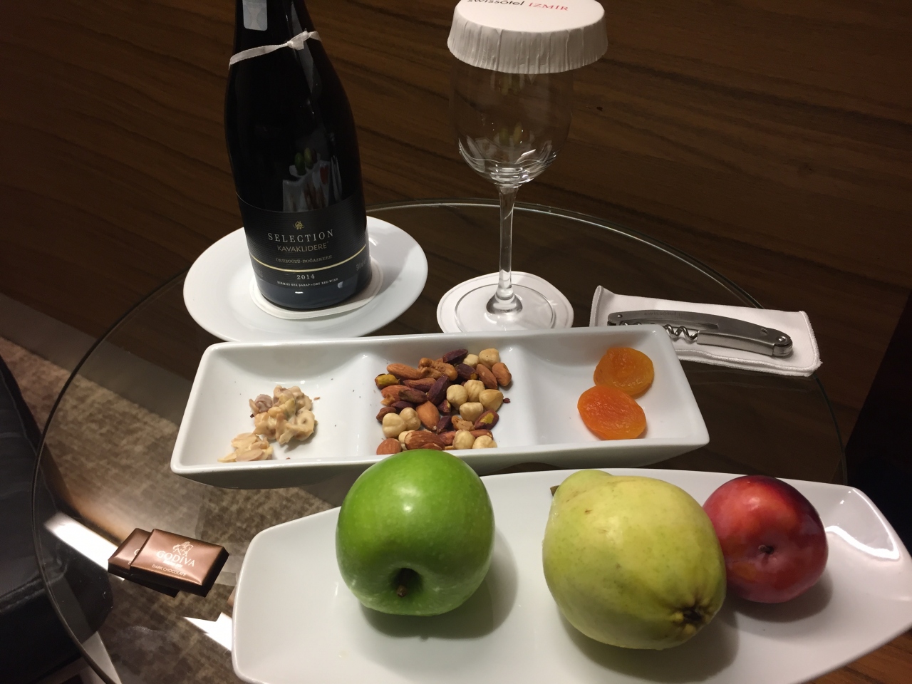トルコ最終日をこのホテルでゆっくりしました。アコーのプラチナステータスで、ラウンジアクセスと朝食が無料で付きました。またウェルカムアメニティが充実していて、ワイン一本が無料でプレゼントされました。私は飲まないので手つかずで置いてきちゃいましたが。。