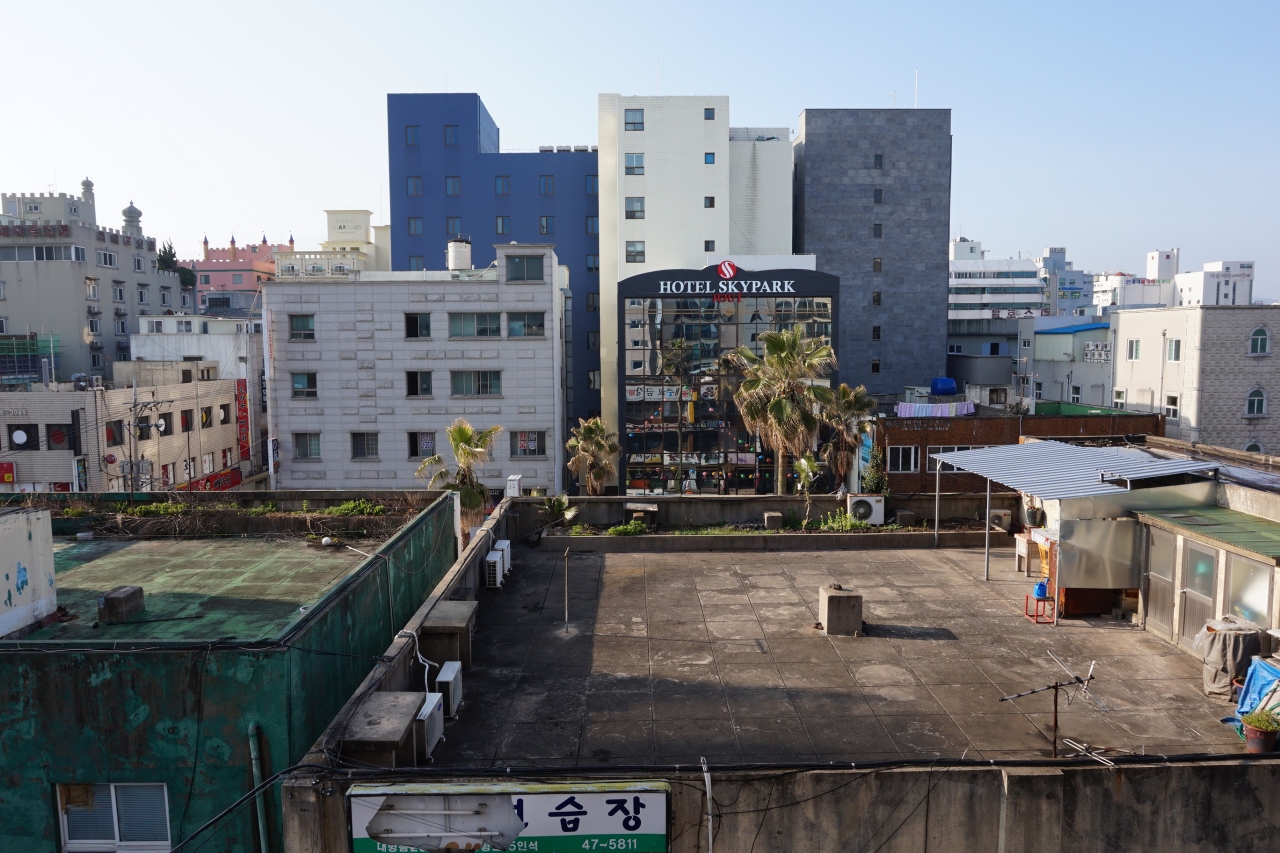 済州の新市街地・新済州にある小さなホテル。繁華街に近く、飲み歩きには最適。眺望が開けず、海の気配すら感じられないので、リゾート気分を味わいたい向きには不向きです。