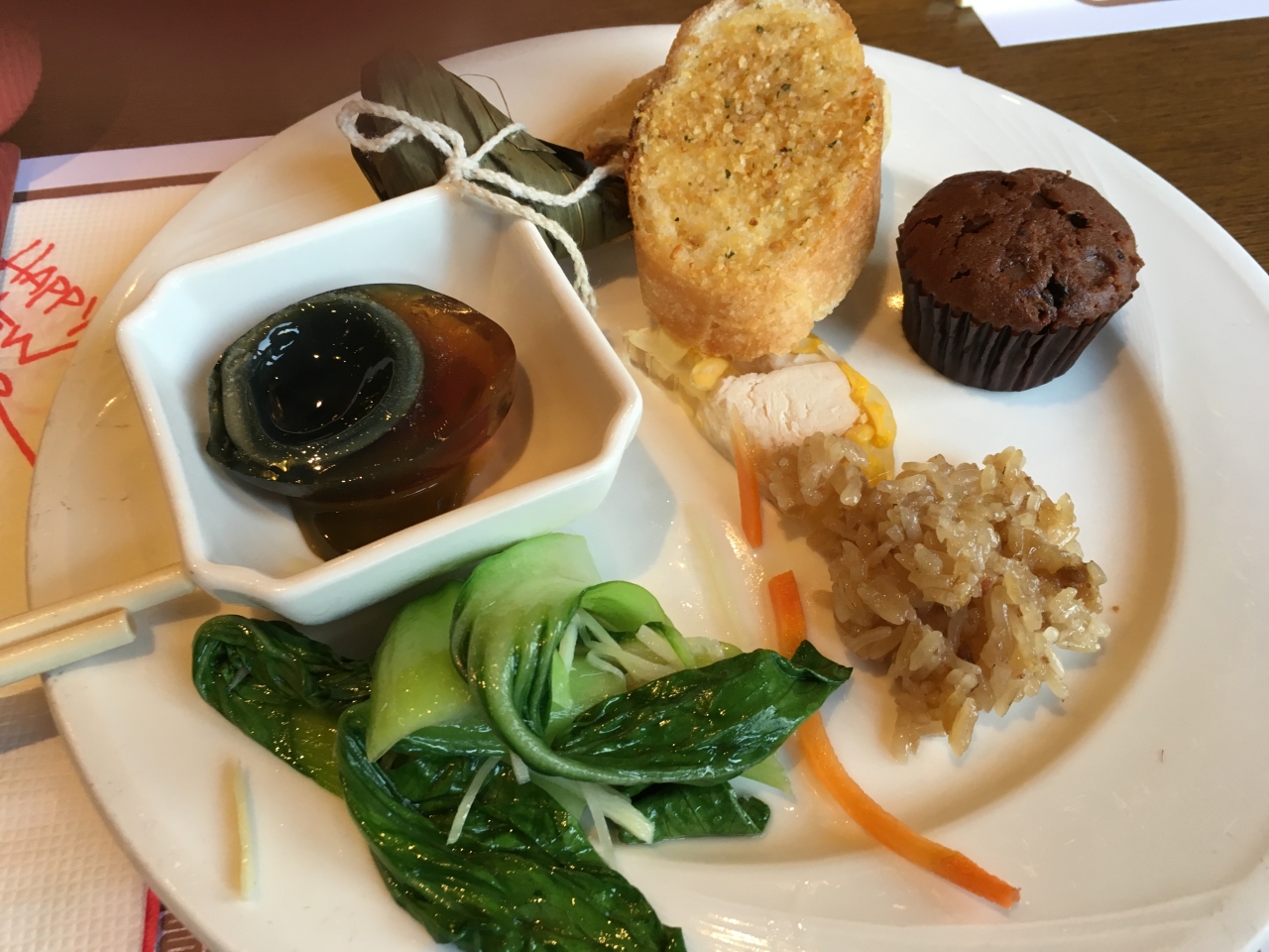 ビュッフェ形式の食事は、まず席の確保が至難の業。