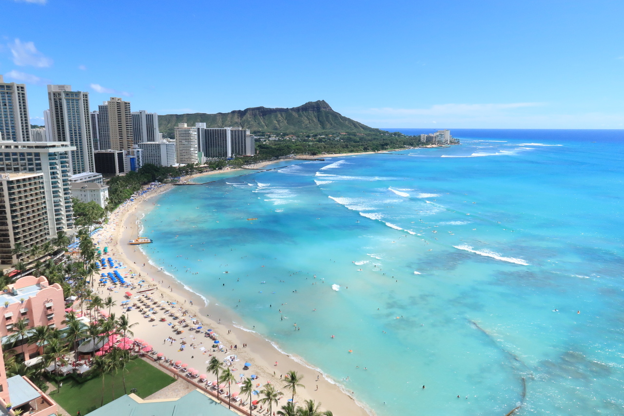 ダイヤモンドヘッドも見えるオーシャンビューのお部屋にしました。