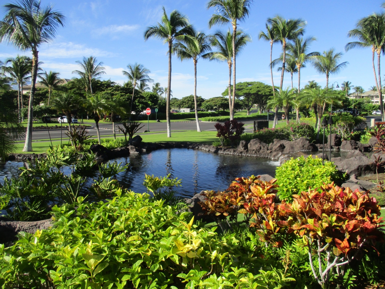 キングスランドの周りは青々とした雰囲気が最高のゴルフコース、ハワイの植物や美しくのどかな雰囲気で過ごせました。
