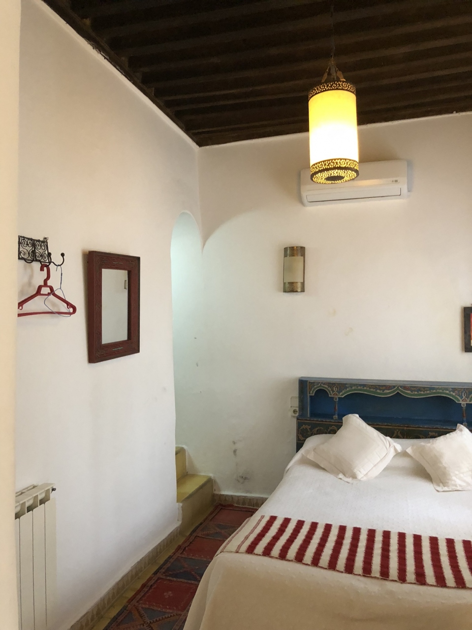 宿まで車が入れないため、2.3分ほど石畳みを歩きます。客室が8客と少ない小さな宿でアットホームでオーナーも親切です。宿の中も青い壁でシャウエンにいることを感じ、屋上のテラス席での朝食は家庭的で美味しいです。眺めも素敵でうっとりします。階段のみなので上階は大変なので年配の方は部屋の確認をお勧めします。
