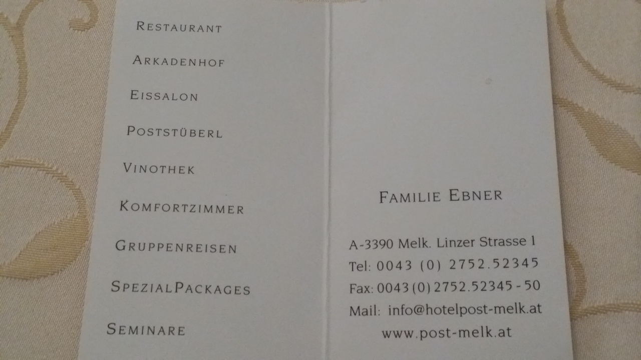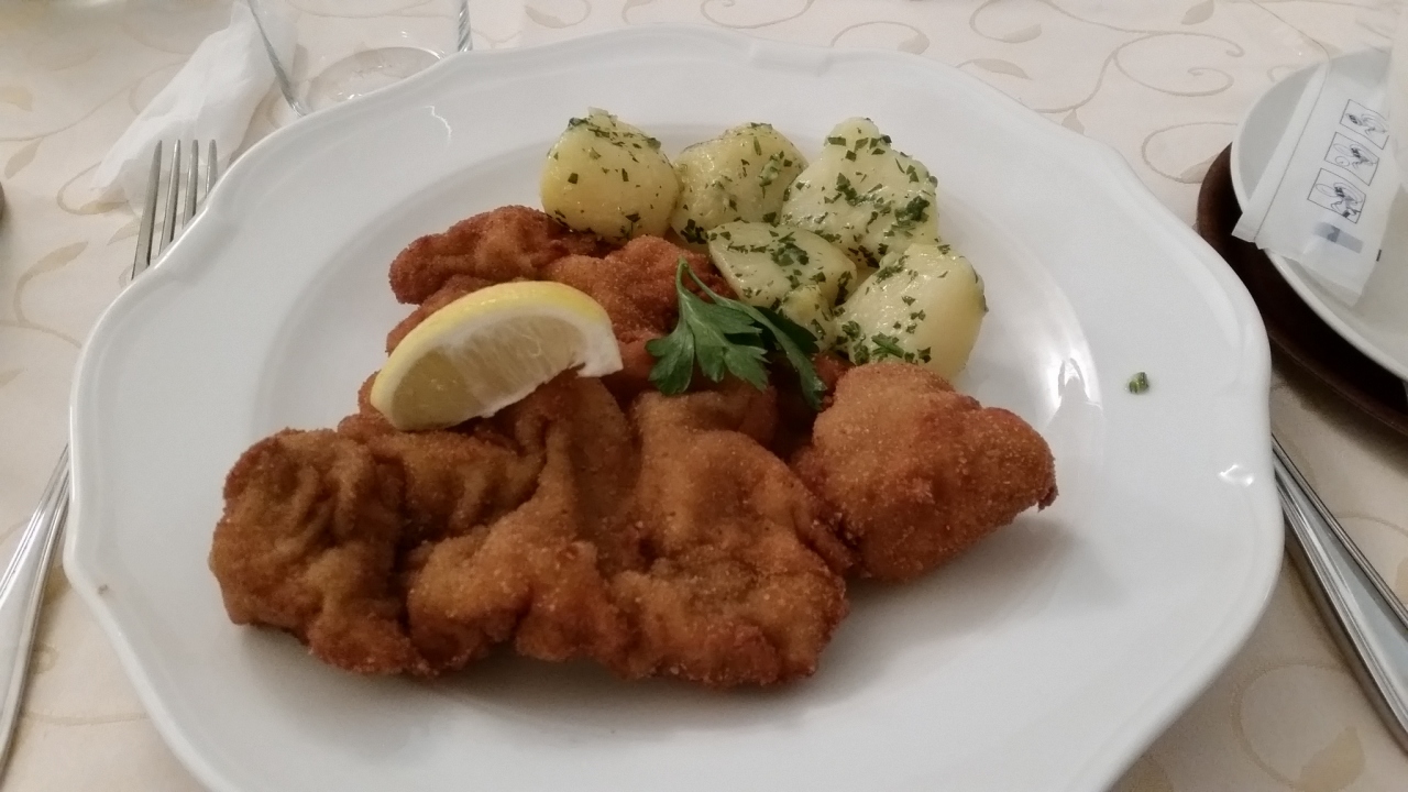 ツアーでランチに訪問しました。偶然街はお祭りで大混雑、サーブに時間がかかりました。メニューはシュー入りスープ、ウィンナシュニッツェル、クレープ。美味しかったです。紅茶は2.9ユーロ(386円)大きなカフェオレボールに入り、蓮華が添えられていました。