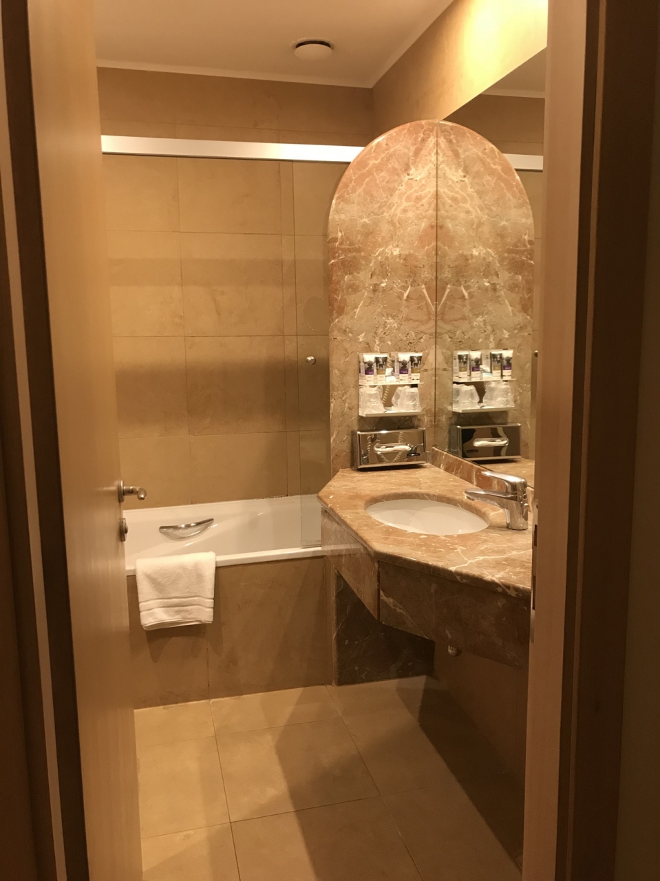 ローマ市内からは離れており、周りにはあまりお店などありませんでした。ホテルの部屋自体はきれいで、部屋も広かったです。バスタブがあるのはよかったですが、カビが生えていたり排水溝の流れが悪かったりとあまり管理が行き届いていない印象でした。また2泊しましたがタオルは交換されていませんでした。朝食はバイキングで、そこそこ種類もありました。