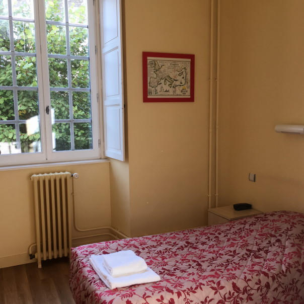 大聖堂まで徒歩3分、ほぼ、目の前。修道院か教会に付属した施設をリノベして宿泊したような感じで、部屋は最低限のものだけ、やや狭く、簡素、清潔、そしてリーズナブルなコスト。「聖」を意味するSt.やsaintが施設名にある、似たようなところに何回も泊まったことがあるが必ず、TVがなく、小さい机と聖書が置いてある。一応、受付は英語OK。車で訪問する場合は、ホテル自体が石畳の路地のレジデンシャルエリアにあり、一般車両は中に入れない。その為、ゲート(道路からポールが出るタイプ)でインターホーン越しにホテルに宿泊する旨を伝える必要がある。通行の際は観光客が多く歩行しているので、歩行者の横断と一方通行の標識に要注意。