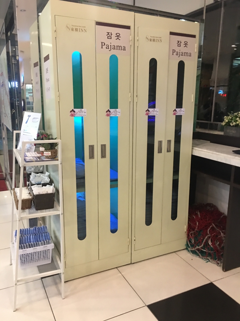 ①日本と同様寝巻きが1Fロビーに同様に置いてある。