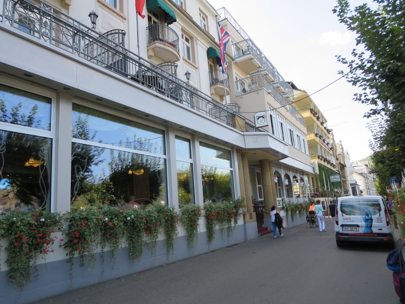 ライン川下りをしてボッパルトで降りると、船を降りたところがベルビューホテルでした。船着き場に隣接した庭にはガーデンカフェがあり、道を挟んでホテルがライン川を臨んで建っていました。部屋はそれほど広くありませんが重厚な造りでした。シャワールームが狭くて使いにくかったのが残念です。