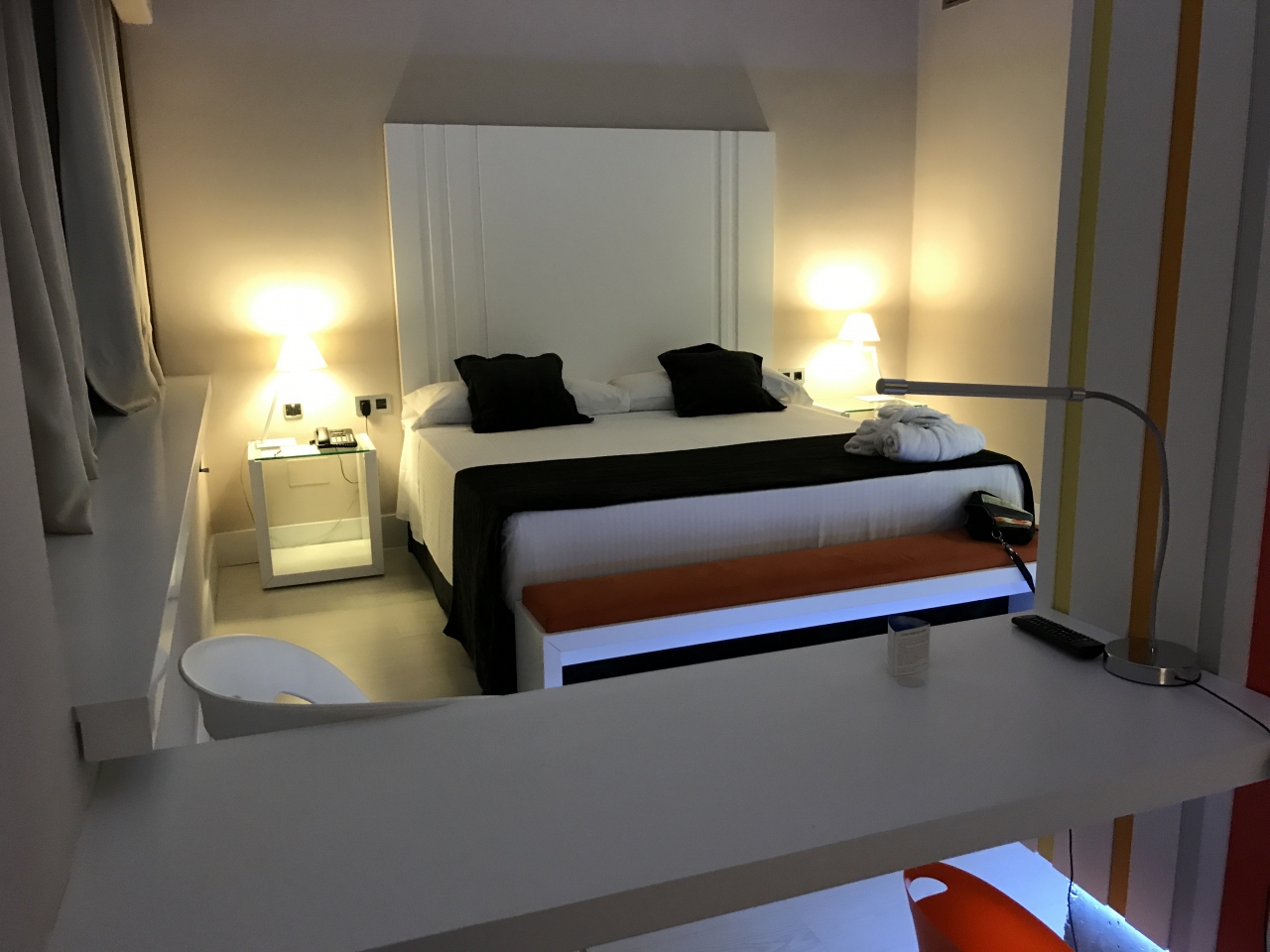 部屋は一見してきれいで立派なんだけど、廊下は古びていて、部屋だけリノベーションしたのかなという感じ。部屋の床の一部がふかふかしていた。そして、夜中過ぎまで部屋の外がやけに騒がしかった。スペイン人は夜遅いのね。