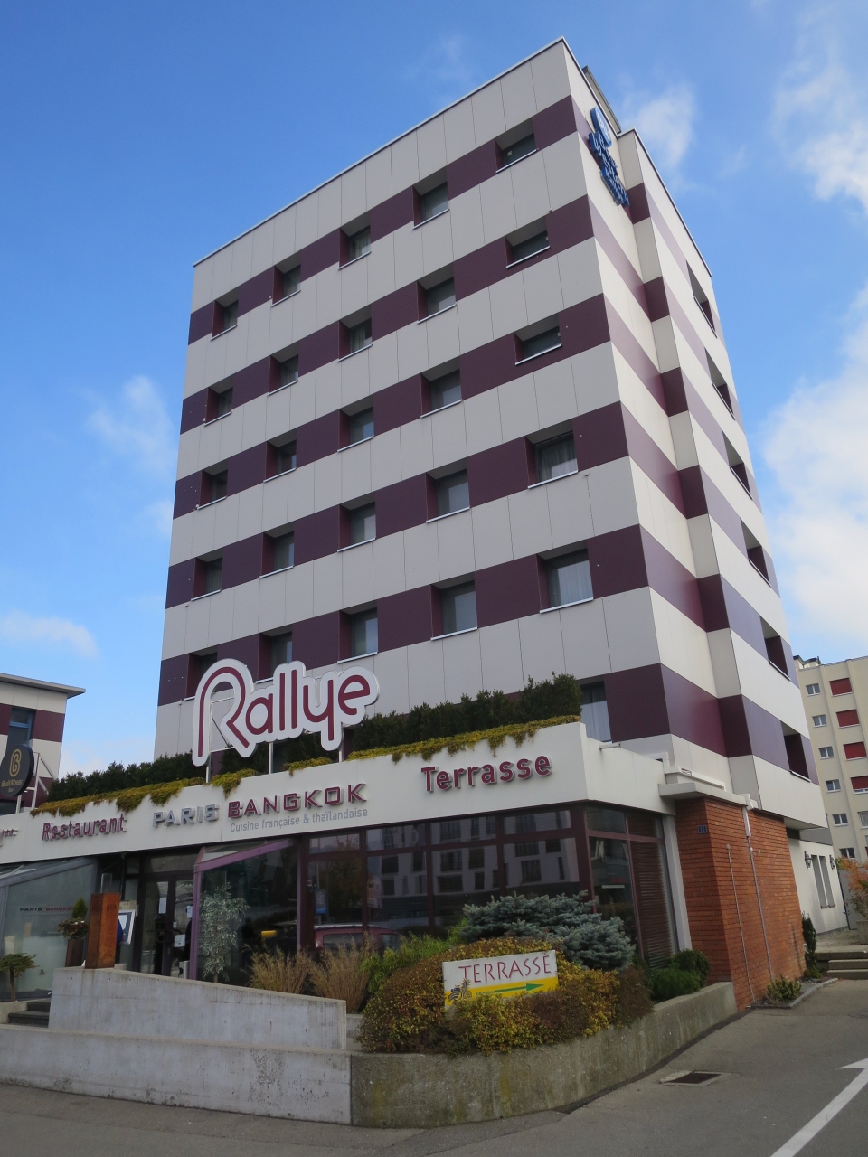 ビュルの町外れにあるが中心市街地は徒歩圏内ですし、交差点を挟んでスーパーマーケットもあるので便利な立地。高層棟の客室はやや古く狭くシャワールームもくすんでいる印象だったが、新館は客室も広く設備も新しく快適でした。値段は少々高くなりますが、新館のほうがくつろげます。