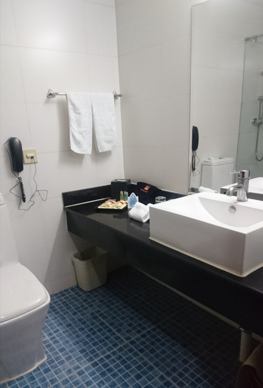 部屋は口コミの通り、汚れが目立つ。洗面台のアメニティにコンドームが2つ置いてあった。シャワーの排水口の下からコポコポと空気の音が聞こえてきた。タオル類、スリッパ、無料の小さめのペットボトルのお水あり。エアコンも効くし、お湯も出た。1階のエントランスはクリスマスの飾り付けがされていたりと部屋とのギャップがある。