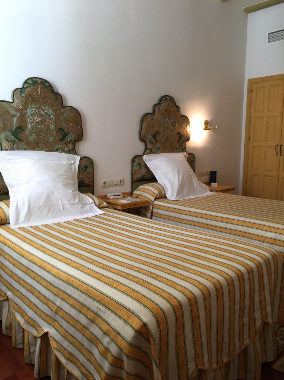一泊めは、レセプションから離れた薄暗く窓のない部屋で、期待はずれでした。次の日、追加料金を支払う覚悟で、空いている部屋はないかとレセプションで尋ねると、パティオに面した部屋を用意できるとのこと。