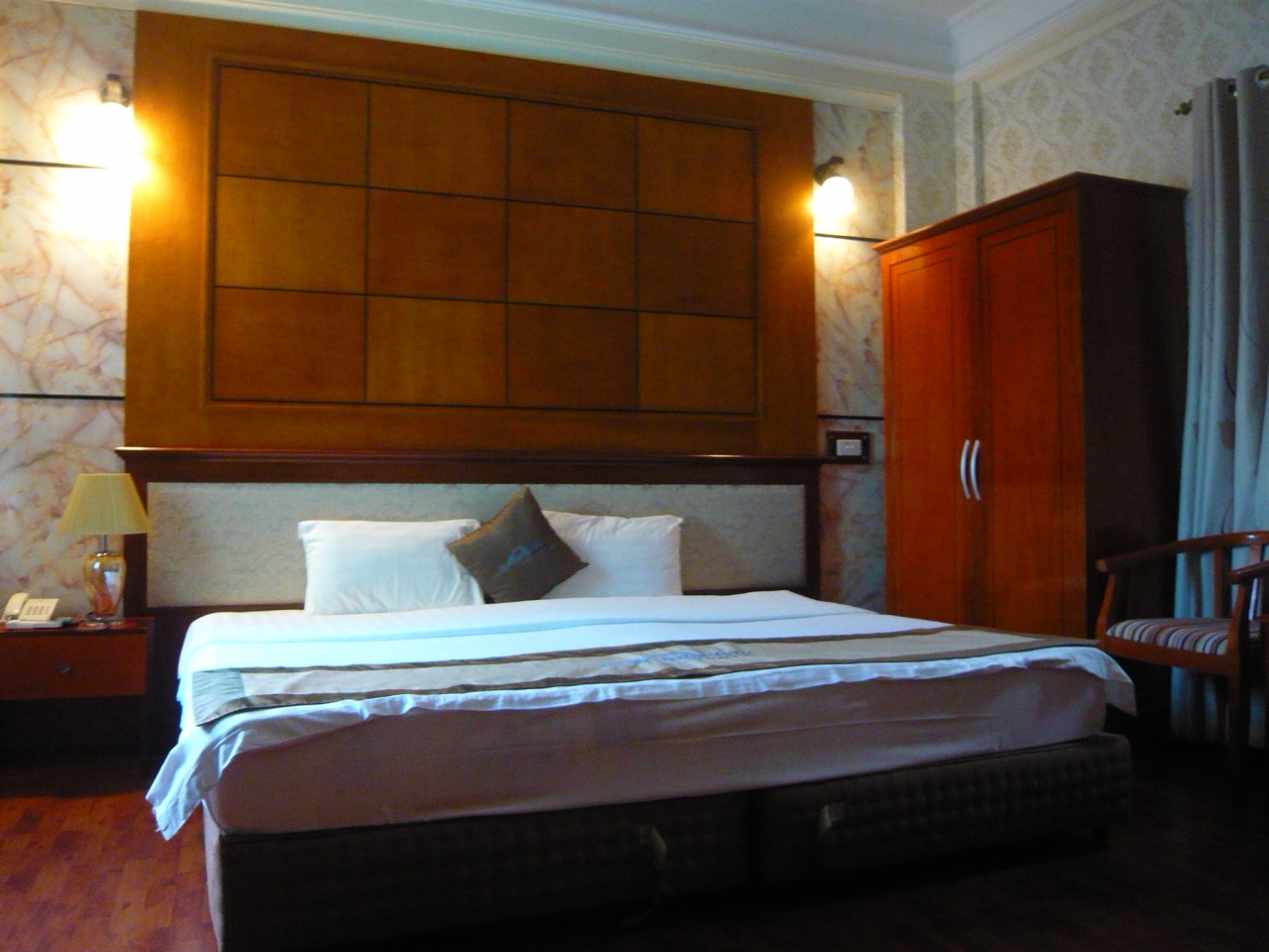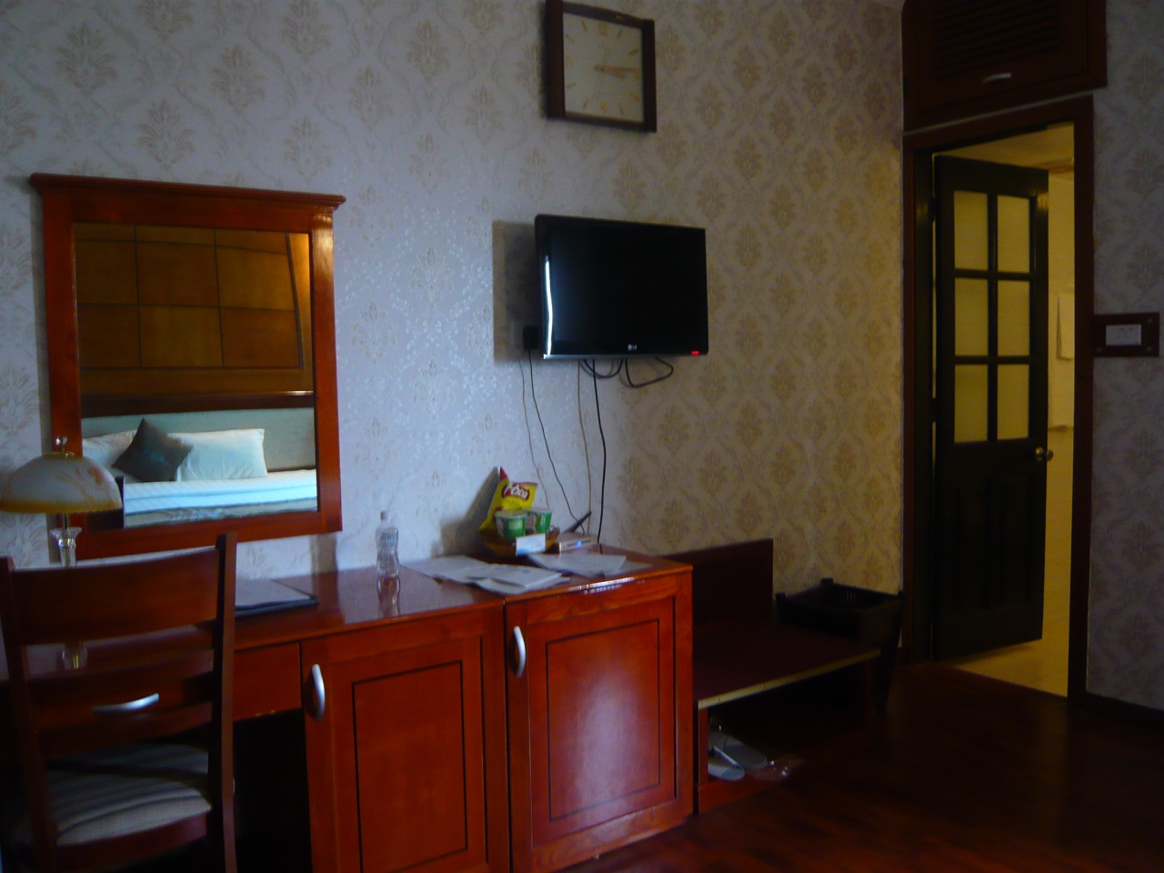 日本語はほぼ通じず。けど、ドアボーイの若いお兄ちゃんが一生懸命分かろうとしてくれてて、私も一生懸命分かってもらおうとして何とか半分くらい通じたのかな?喧噪の真ん中にあって外出の時は右見て左見てほぼ歩くことのできない狭い歩道を友人と手を取りながらビクビク歩く。あまりのバイクの多さに棒立ちになってしまう。歩行者も信号もほぼ無視。1人で使うには部屋もバスタブも広い。けど、5分くらいお湯を出していると水になる。だから3日間水シャワーだった。友人の部屋も同じだったみたい。排水管のつまりを直していたみたいだったけどあまり改善されず。12月でも毎日暑かったから別にいいやって思ったけど。フォーもあったけど朝食はあまり美味しくないかな。