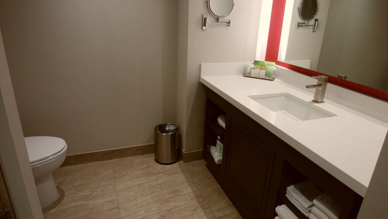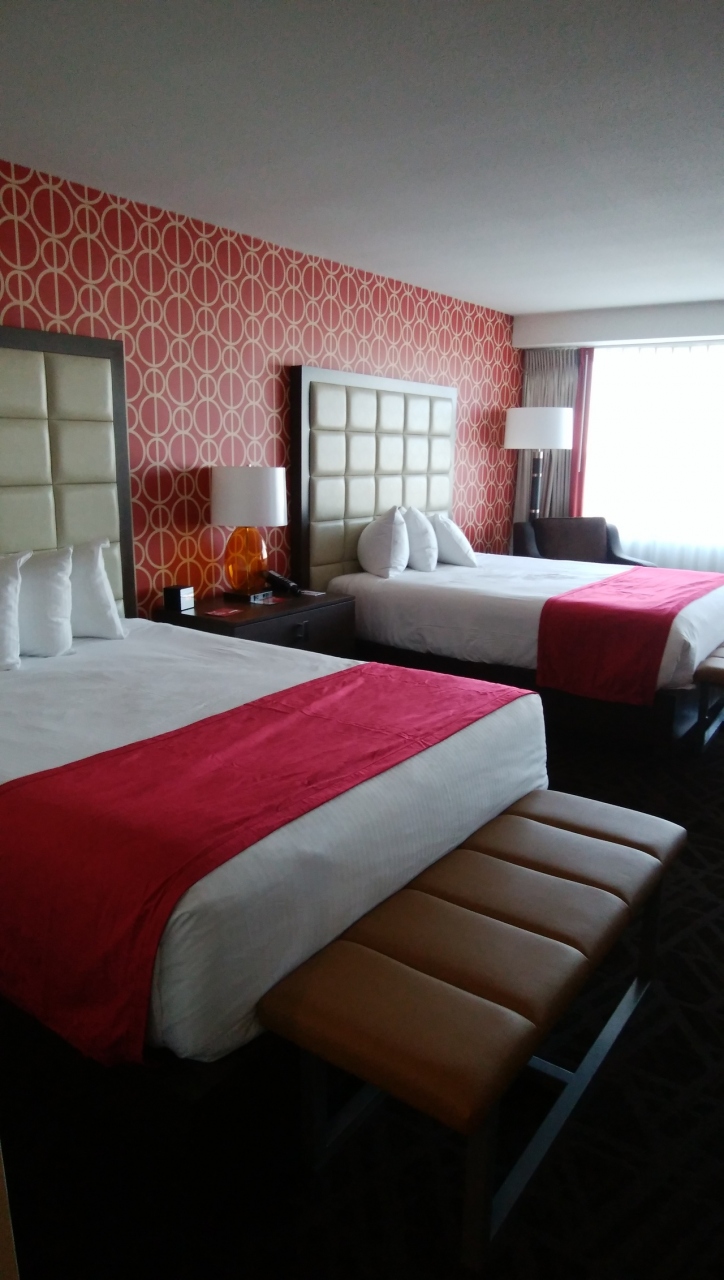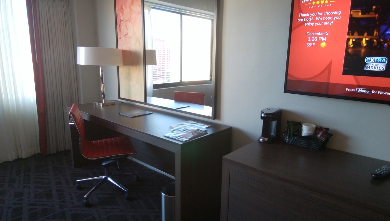 立地と部屋の広さ以外特に良いところはありませんが3度目の利用。今回はリンクの観覧車が見えるお部屋でした。お風呂はバスタブは無しのシャワーのみでした。無料のコーヒーと空の冷蔵庫がありました。リゾートフィーは3日間で約120ドルでした。