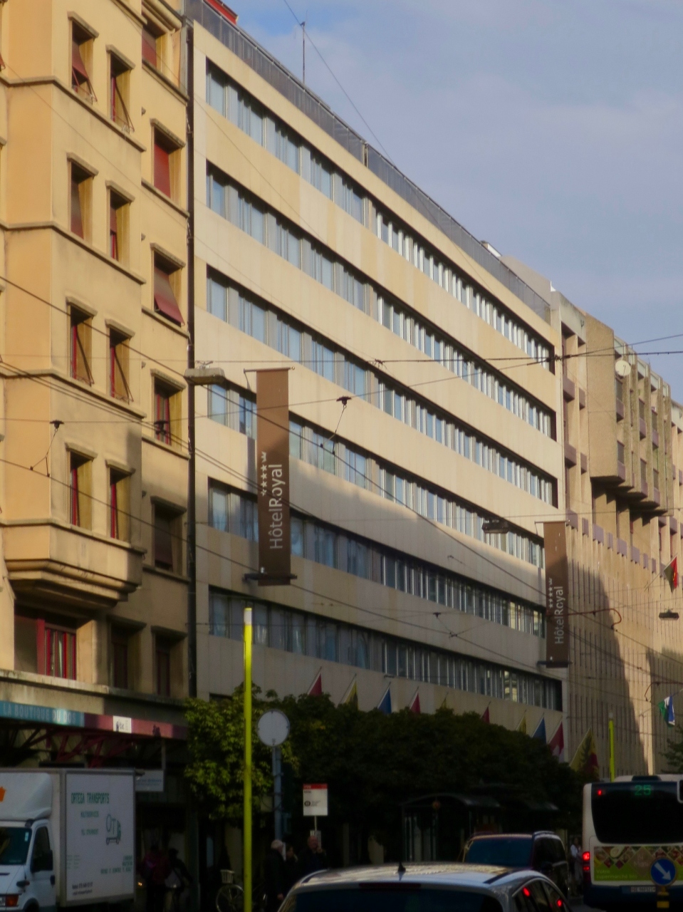 ジュネーブ・コルナバン駅を出てトラムの走る道を左へ進んでいくと薄汚れたビルがあり、それが目指すホテルでした。外観を見たときは正直失敗したとガッカリしましたが、内部に入ると全く違う空間が広がっていました。スイスらしい重厚感のあるインテリアと客室は狭いながらも必要な家具類が配置されて使い勝手の良いものでした。フロントスタッフの笑顔も気持ちよかったです。