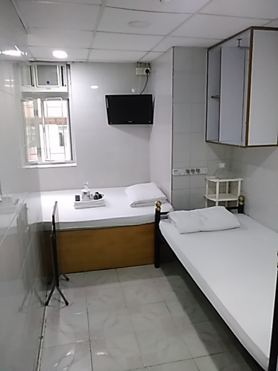 ネイザン通りのMTR 尖沙咀(チムサアチョイ)駅近くのマンション内にあります。ホテルは、マンションの一つを、部屋を分割して泊めている、日本で言う民泊のようなところです。今回は、フォートラベル経由、ホテルドットコムで予約して、ツイン1泊4000円台でした。片付けはされています。シャワーはトイレと一緒でシャワー後、周りはビシャビシャになります。香港は暖かいからなのか、エアコンは暖房にならなく送風状態で、反って寒い感じがしました。室内の広さは二畳程の通路のほかはベットです。マンションには二ヶ所にそれぞれ複数のエレベータがありますが、止まる階で使い方を分けています。