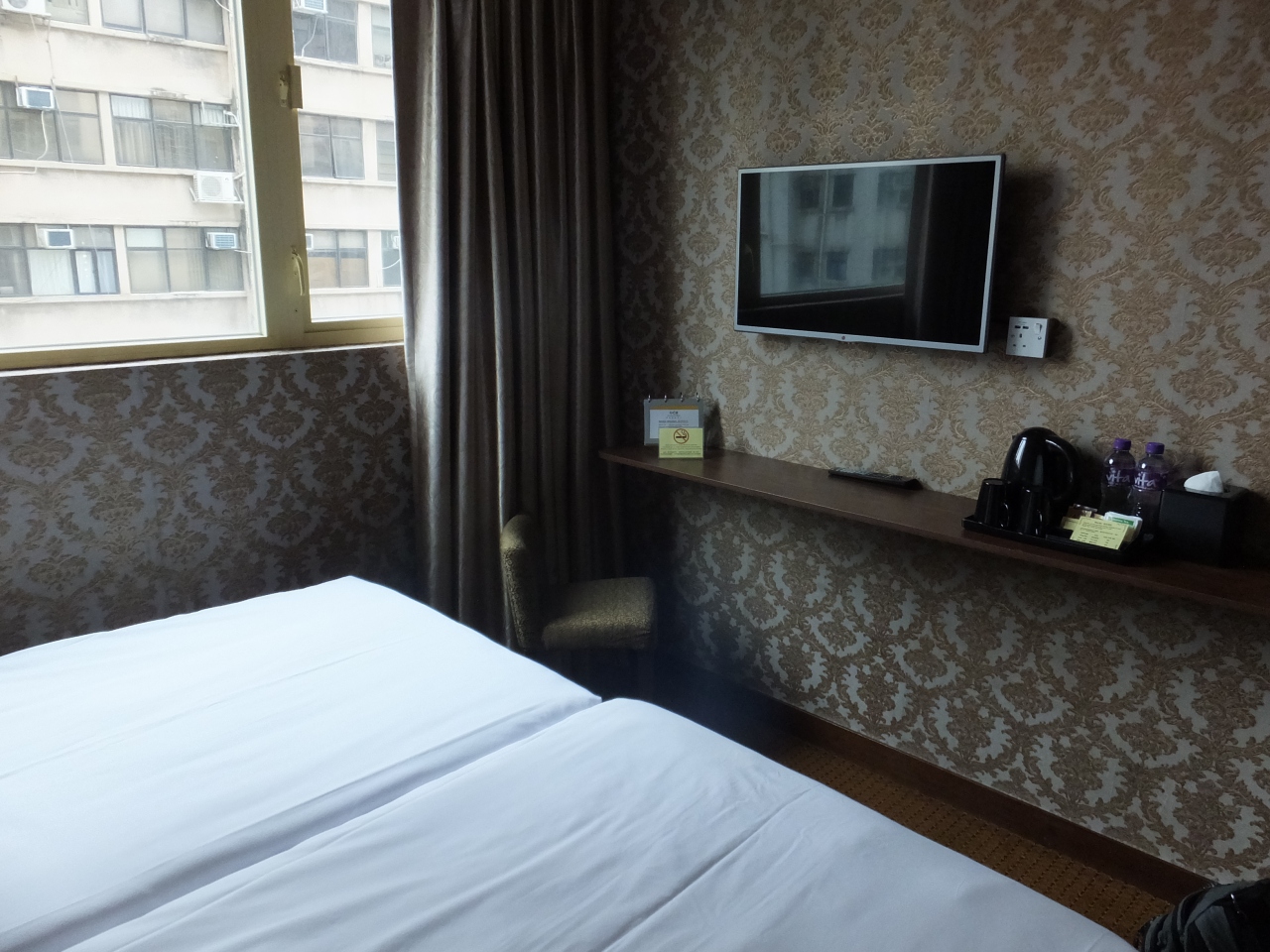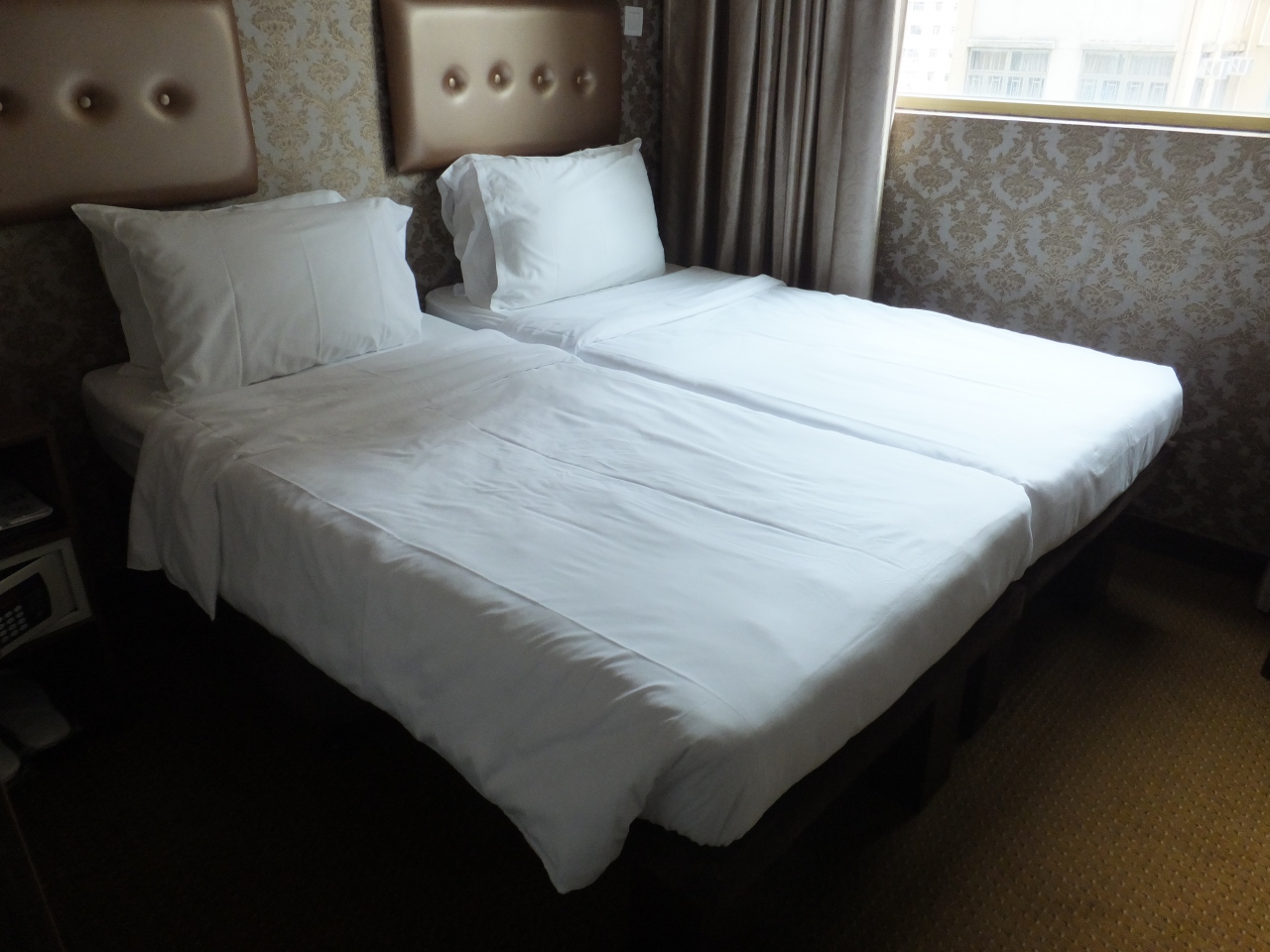 部屋は日本のビジネスホテル並みの広さで、シャワーとトイレと部屋はカーテンのみで仕切られていました。