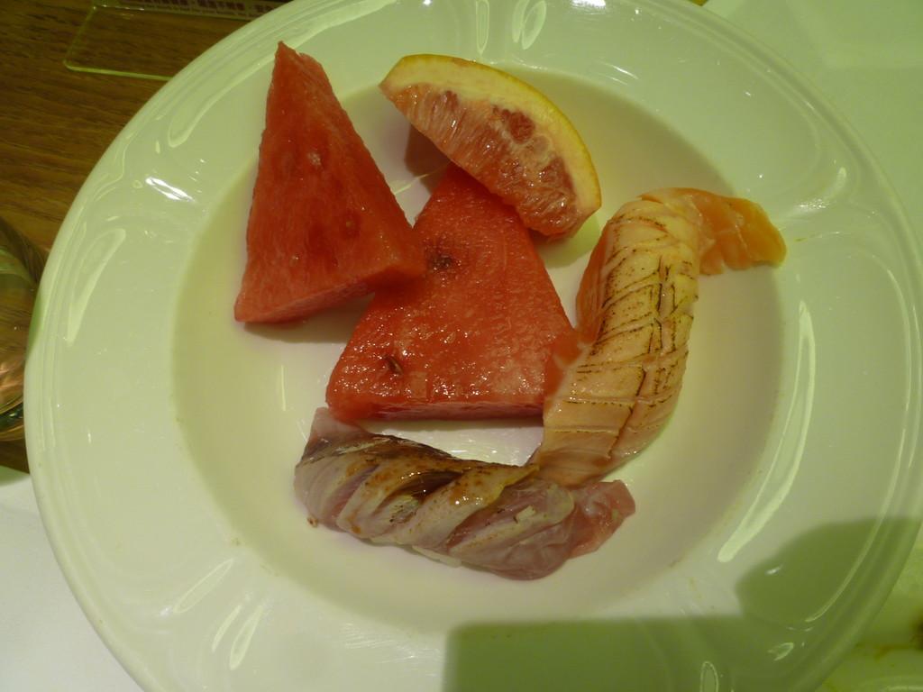 4回目はデザート、5回目は再び寿司、6回目は寿司とフルーツ、7回目はサラダ、