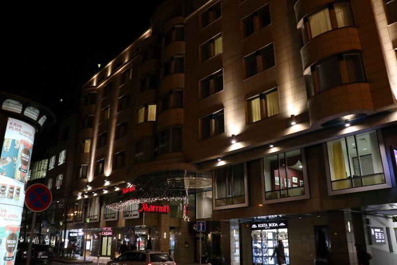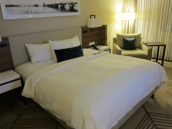 旧市街広場までは15分位、カレル橋までは30分位です。隣にスーパーBILLAがあります。部屋は広く快適です。バスローブ、使い捨てスリッパあり。水ボトルは無料で毎日追加してくれます。Wifiはロビーのみ無料、マリオット会員に登録すると部屋でも無料だそうです。