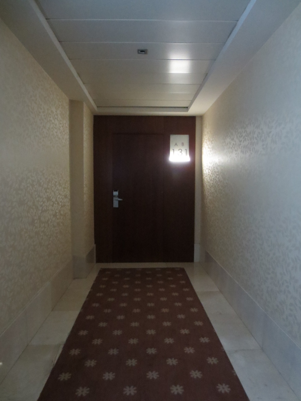 3人で宿泊したので、同じ部屋番号にA、Bに分かれて、入口は部屋番号によって中に入ると広い廊下と応接間があり、その中にAとBのお部屋のドアーがあり、2部屋独立していました。